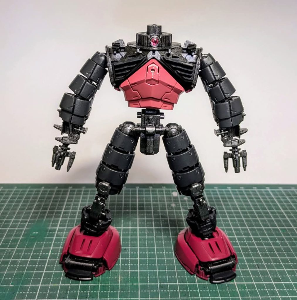 黒サフを吹いたあと、ガンメタを表面のみならずパーツの裏の隅々まで丁寧に塗装、それから胸部ダクト、頭部ミサイルはセミグロスブラックを筆塗りしました。