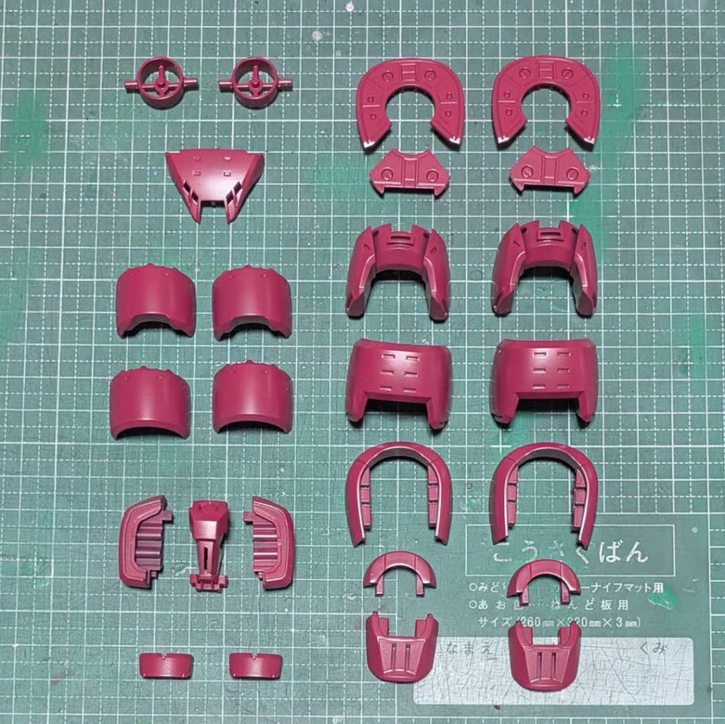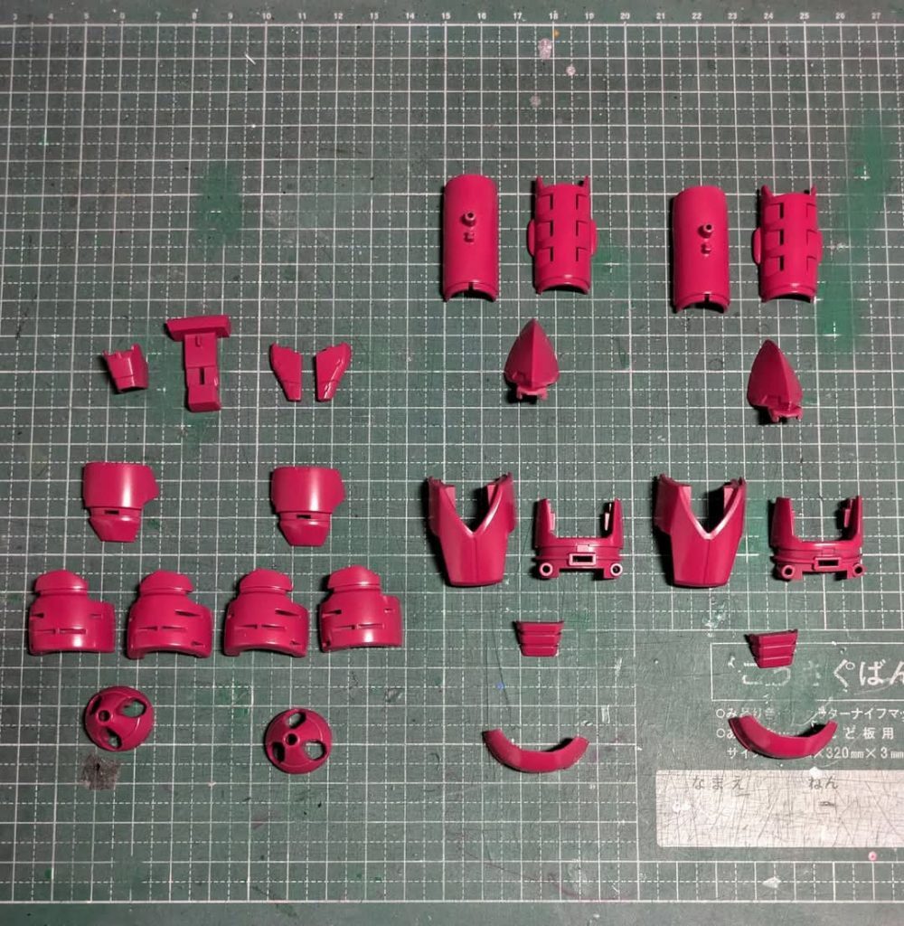 3色へとシャアレッドを減らした分、逆にそれぞれのパーツ毎の色合いをキッチリ合わせるのにはかなり神経を使いました。