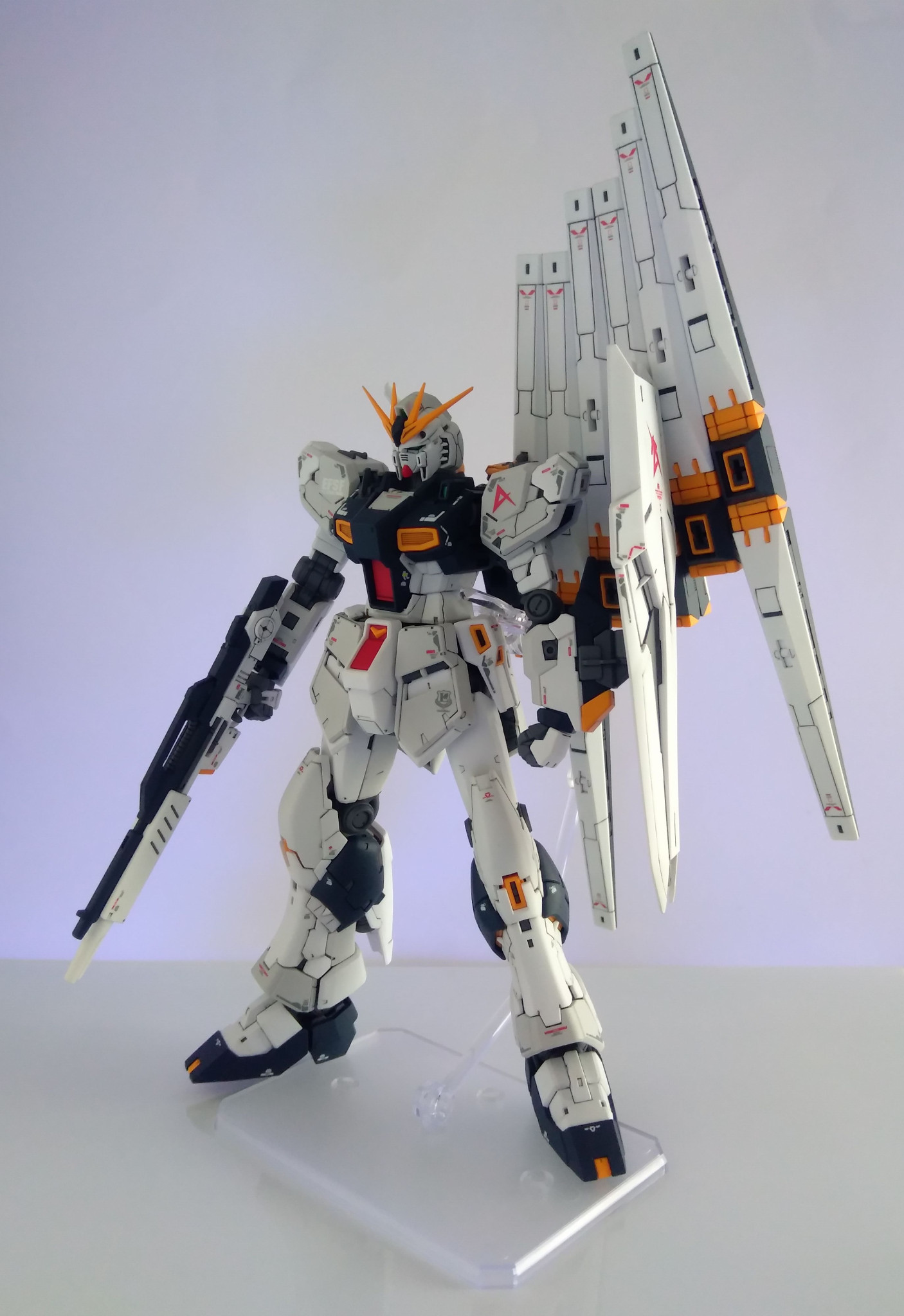 RG νガンダムをつくりました。ゲートやパーティングラインを処理しただけの素組です。今回はスピード重視でサフレスで塗装しました。完成まで約一ヶ月、私にしてはかなりのハイペースでした。