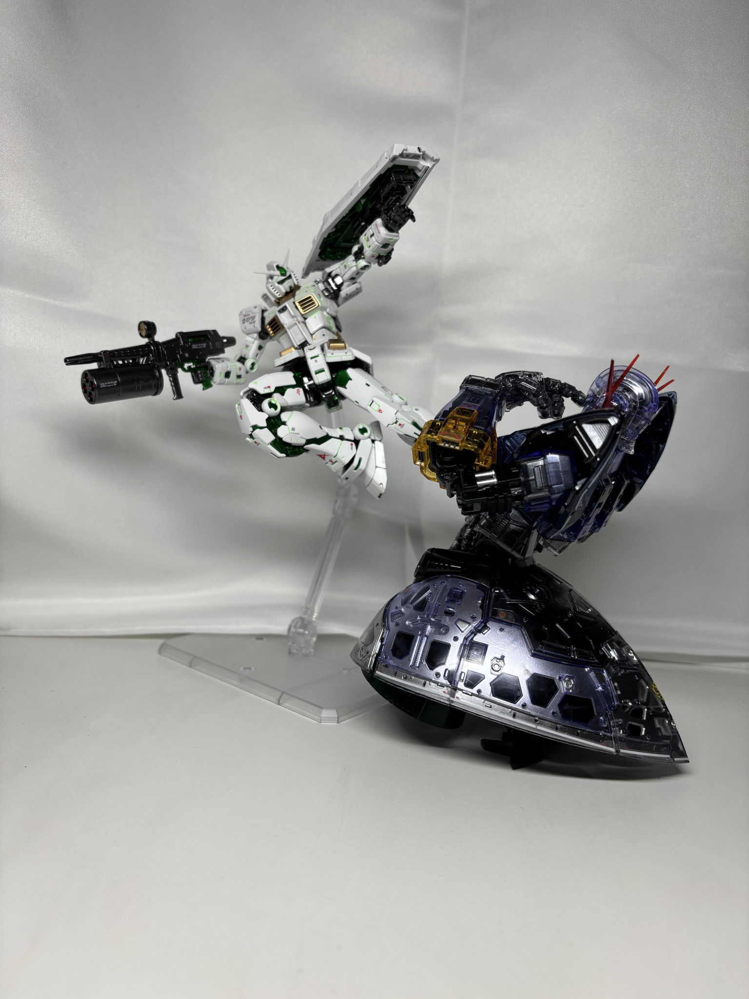 コメント失礼します。初投稿おめでとうございます。RGガンダムver.2カッチョエエです👍️カラーリングも斬新ですね👍️スジ彫り等に入れているのは蛍光グリーンか何かですか?ユニコーンみたいでいいですね👍️次回作も期待しています。