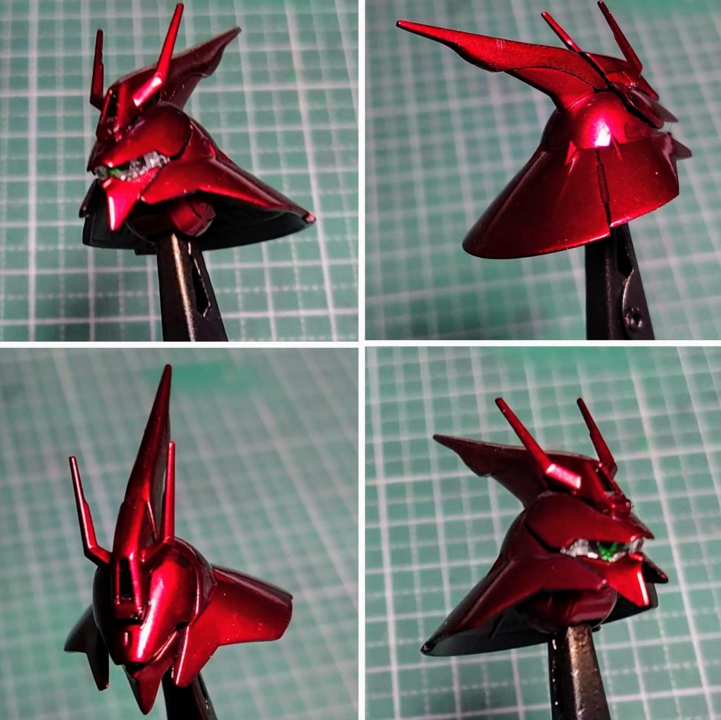 機体色のシャアレッドは、ピンクを含め3色に塗り分け (※組立…