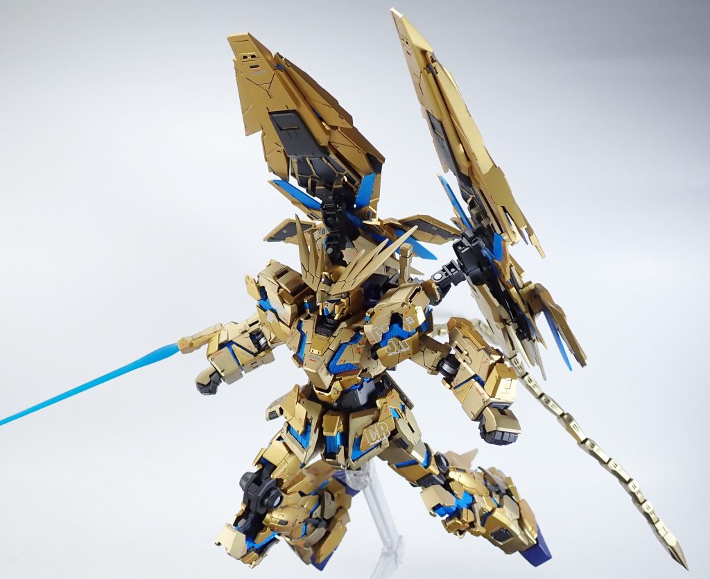 改修としては、デストロイモード・ユニコーンモードのアンテナをプラ板で製作。その他、首を0.5mm延長しました。