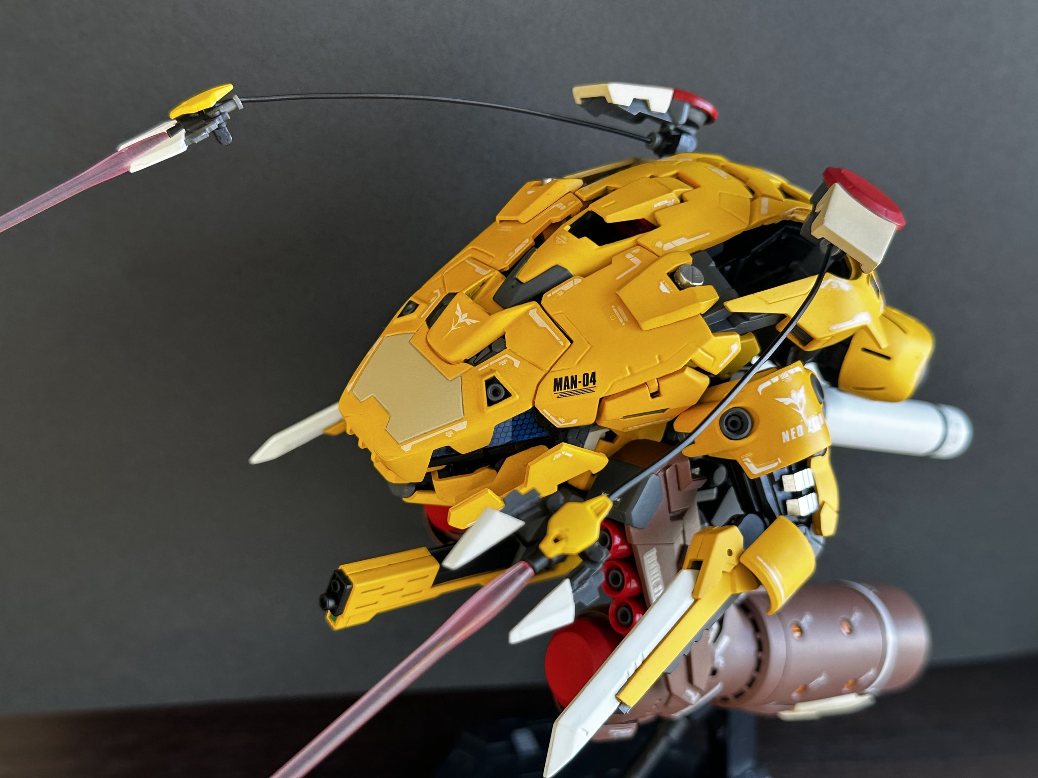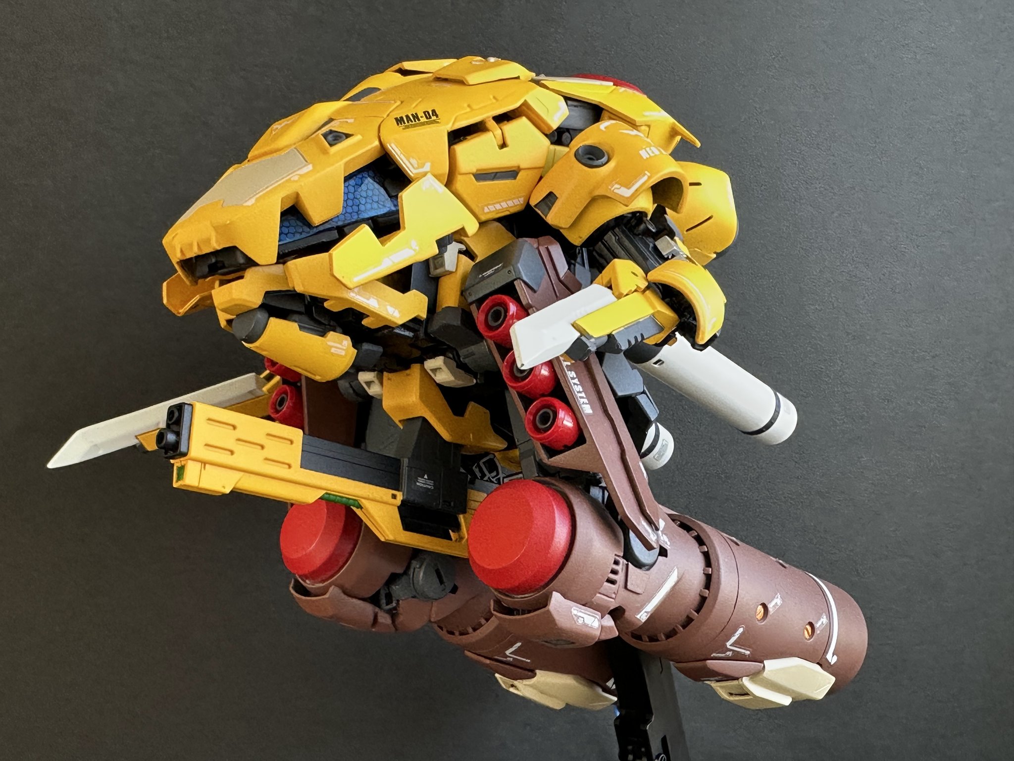 欠点とされた姿勢制御も各所にスラスターを増設、左右方向で悩んだが逆シャア時代流行りの肩バーニアがあるやんと作り込み。ベースのRGサザビーとも相待ってコンポーネントを共通化し異なる運用を想定したMA機体って事に。型式もSとAのみのが違いで兵装も共用可能。