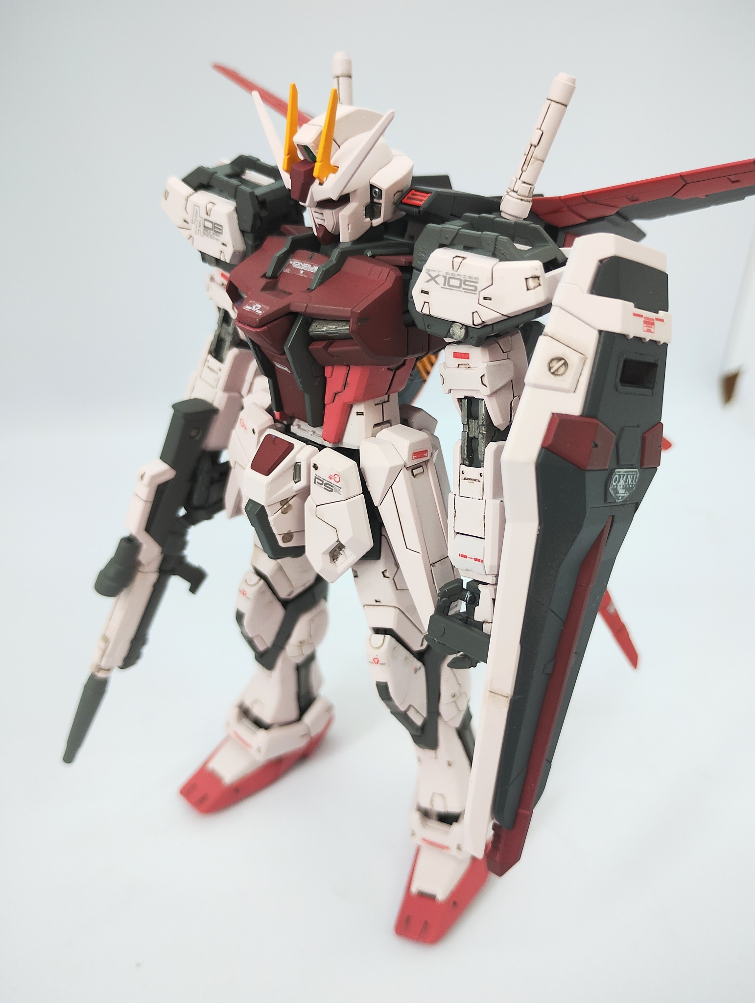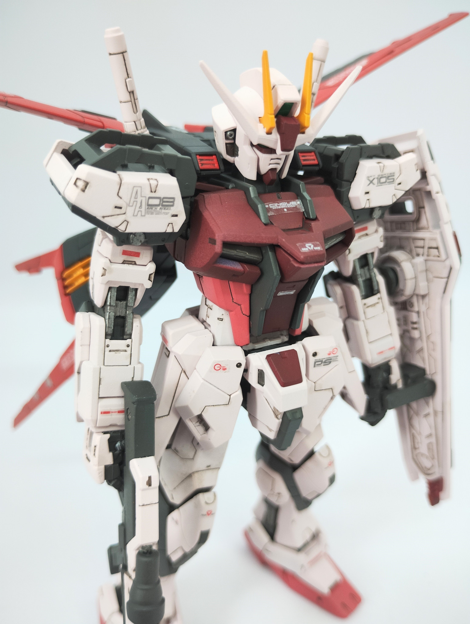 RGエールストライクガンダム、ギブバース。前回作ったEGストライクガンダム(アニメ塗り)に使ったキットが、ビームライフルとシールド付いててアーマーシュナイダーが付いてないやつだったため、RGエールストライクガンダムからアーマーシュナイダーをパチったので、袋のあいたRGエールストライクが…という事でいっそのことと作りました。