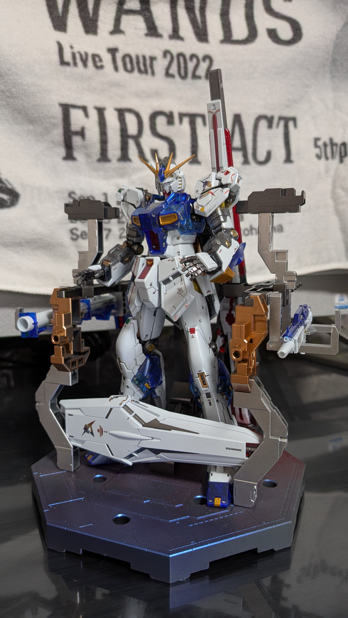クリアカラーいいですね。フレームの塗装部分のチラ見せがたまらんです。ロングレンジフィンファンネルの赤パーツに欽ちゃんの仮装大賞の得点のごとく徐々にエネルギーが充填されていく様が想像できます。
