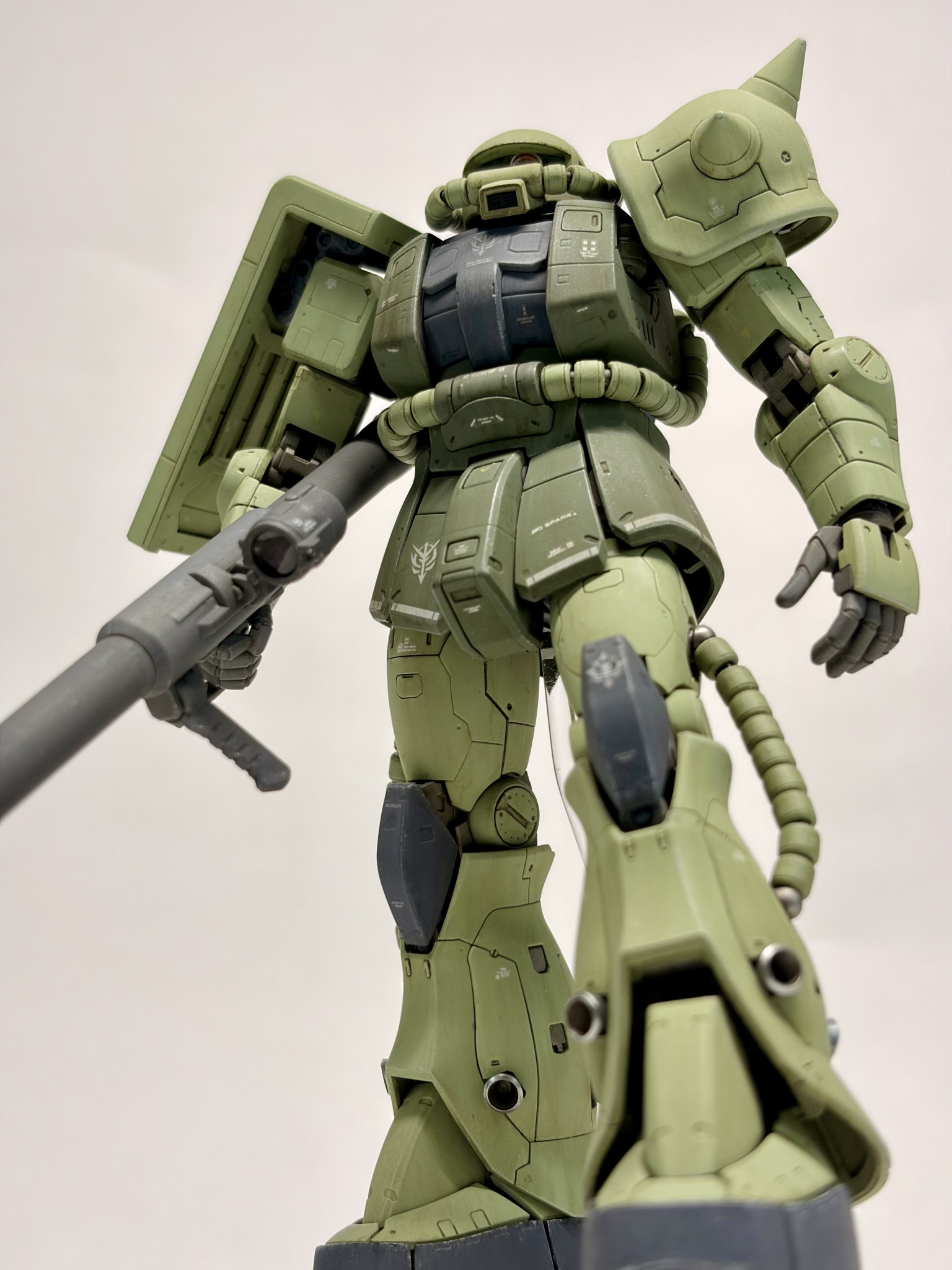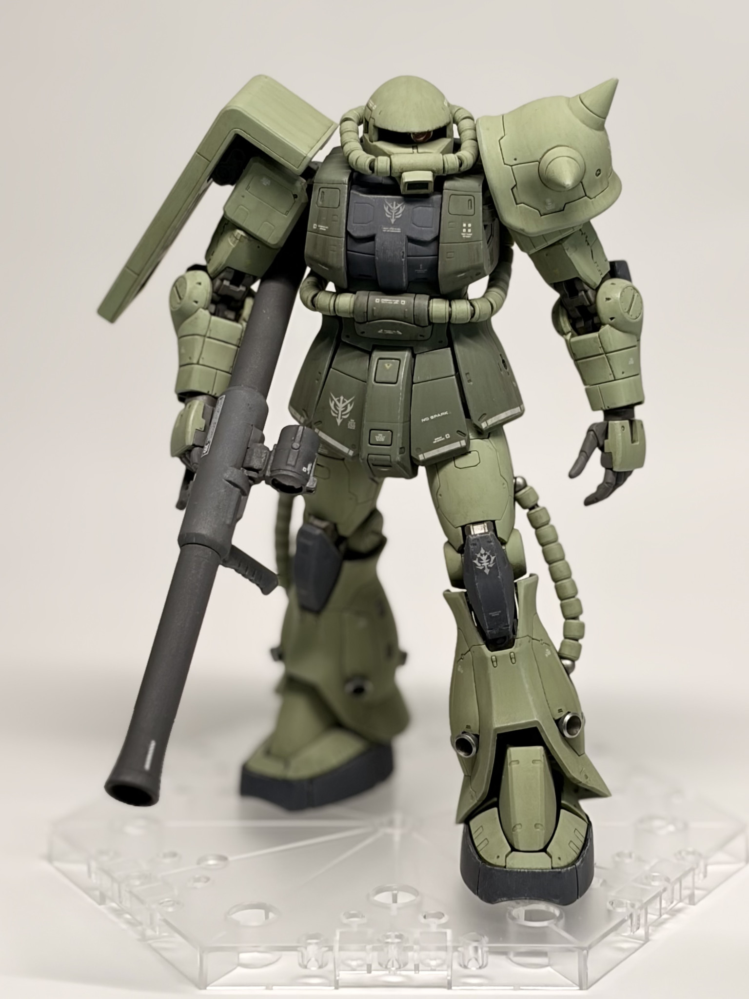 茄子 RG 2025.10/18更新 MS-06F ザク2 128 28 いいねしたモデラー(28) 0 0 作品を共有 RGザクは作り甲斐がありましたが、小さくて目が疲れました。今回は控えめなウェザリングを目指しました。 スラスターとモノアイは社外品です。この写真iPhoneで撮りました。最近の携帯はボケ感の表現が素晴らしいです。筋彫りはしてません。(小さくて見えません。)ウェザリングカラーに丸投げしてます。リアビューです。別角度からもう一枚。こちらは右前から。見上げて一枚。左から一枚。飾る時はこんな感じで丸棒曲げて柱にして支えています。前垂れは真鍮棒で補強しました。撮影風景です。家族に冷やかされました。(´Д` ) コメント コメントをして応援しよう コメントにはログインが必要です 茄子 6 軍警ザク ウェザリングは難しい😓。 茄子さんのページ この作品をお薦め作品に設定する Please login to update your profile! Please login to update your profile! Please login to update your profile! Please login to update your profile!