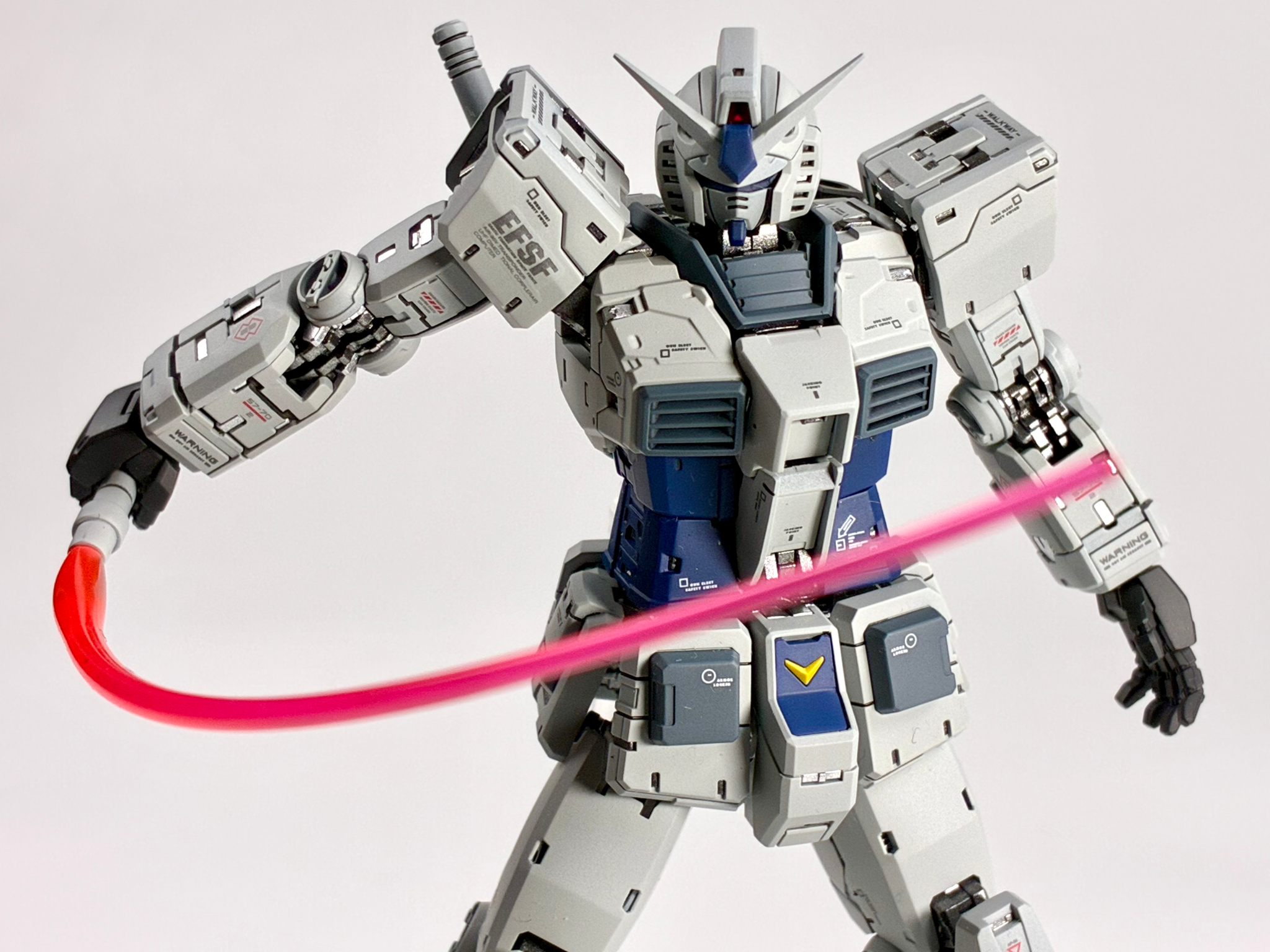 私は主に内側の関節などに使用するメタリックカラーは光沢、装甲など表面は艶消しで製作しますがRGガンダム2.0はその表現がうまく機能してくれるのでお気に入りのキットです。