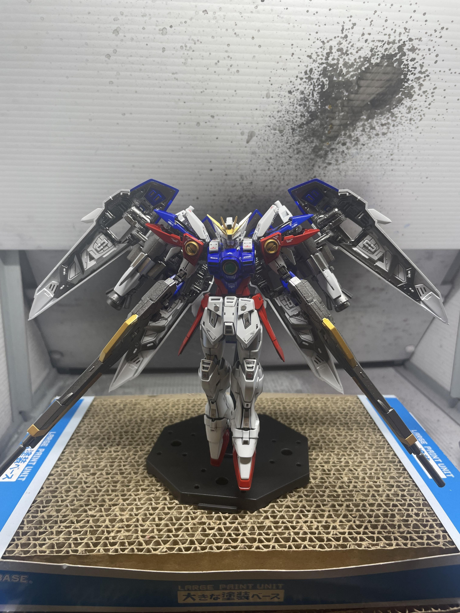 RG ウイングガンダムゼロを塗装しました。遠距離の異動で悲しんでた中、ラッキーで買えたので久しぶりにやるかと思い立ちました。この機会に投稿にもチャレンジしてみました。塗装は21体目です。明るいので塗装ブースの中でiPhone使って撮影してます。プラダン汚れてるけど。。。笑