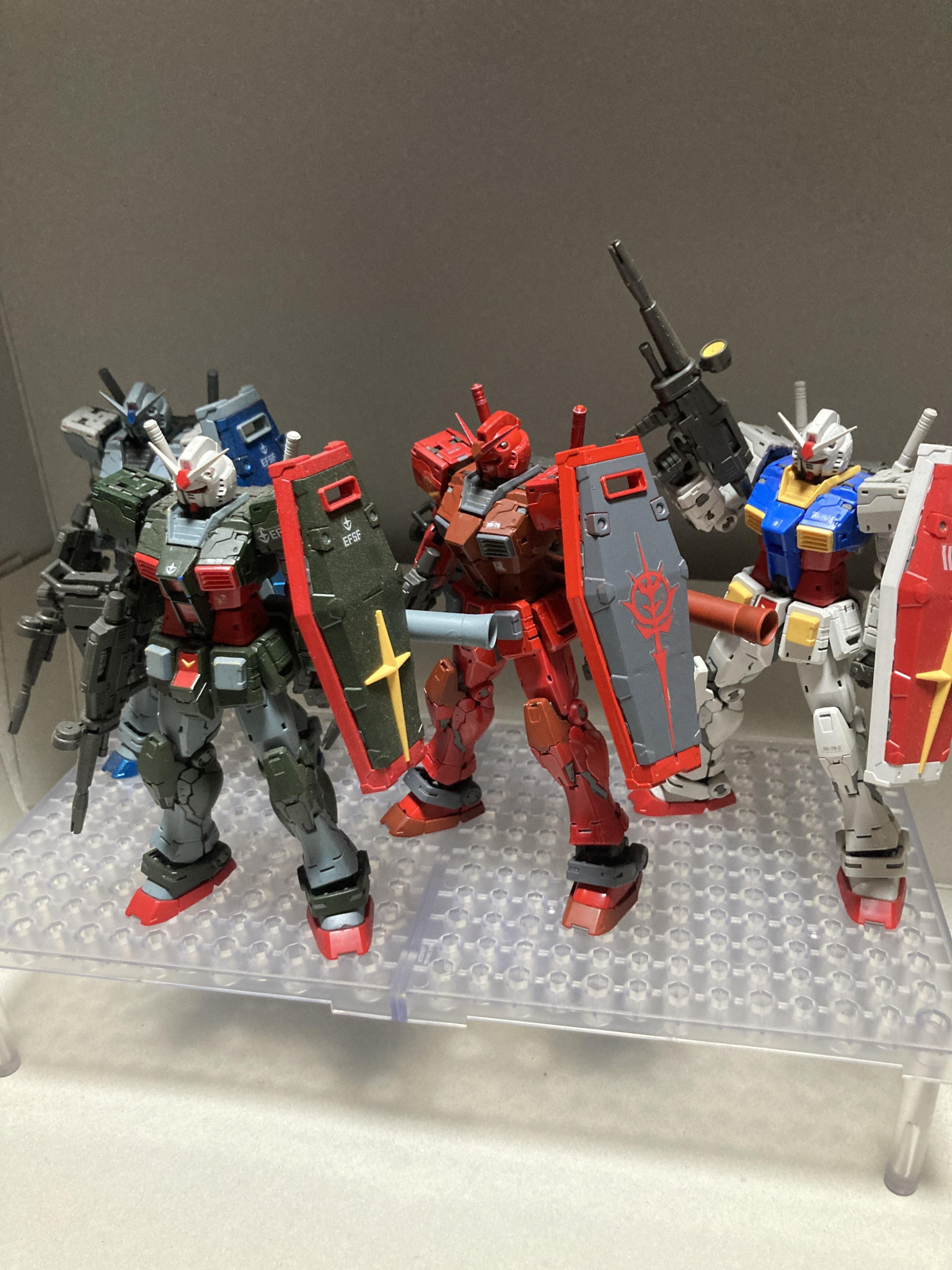 組み立て後にパーツが余ったり、パーツ破損で天に召された方々のパーツを使い、気が向いたら改修していくスタイルです。購入後1年以上寝かした作品が多いです。