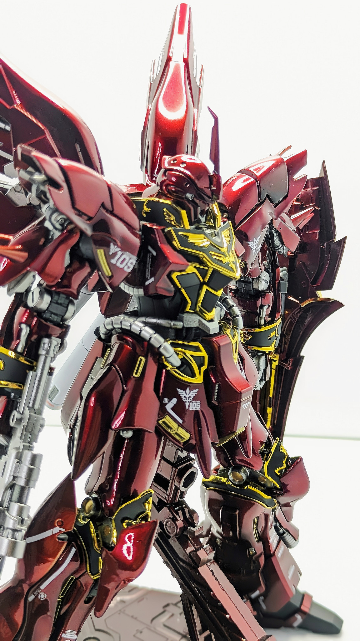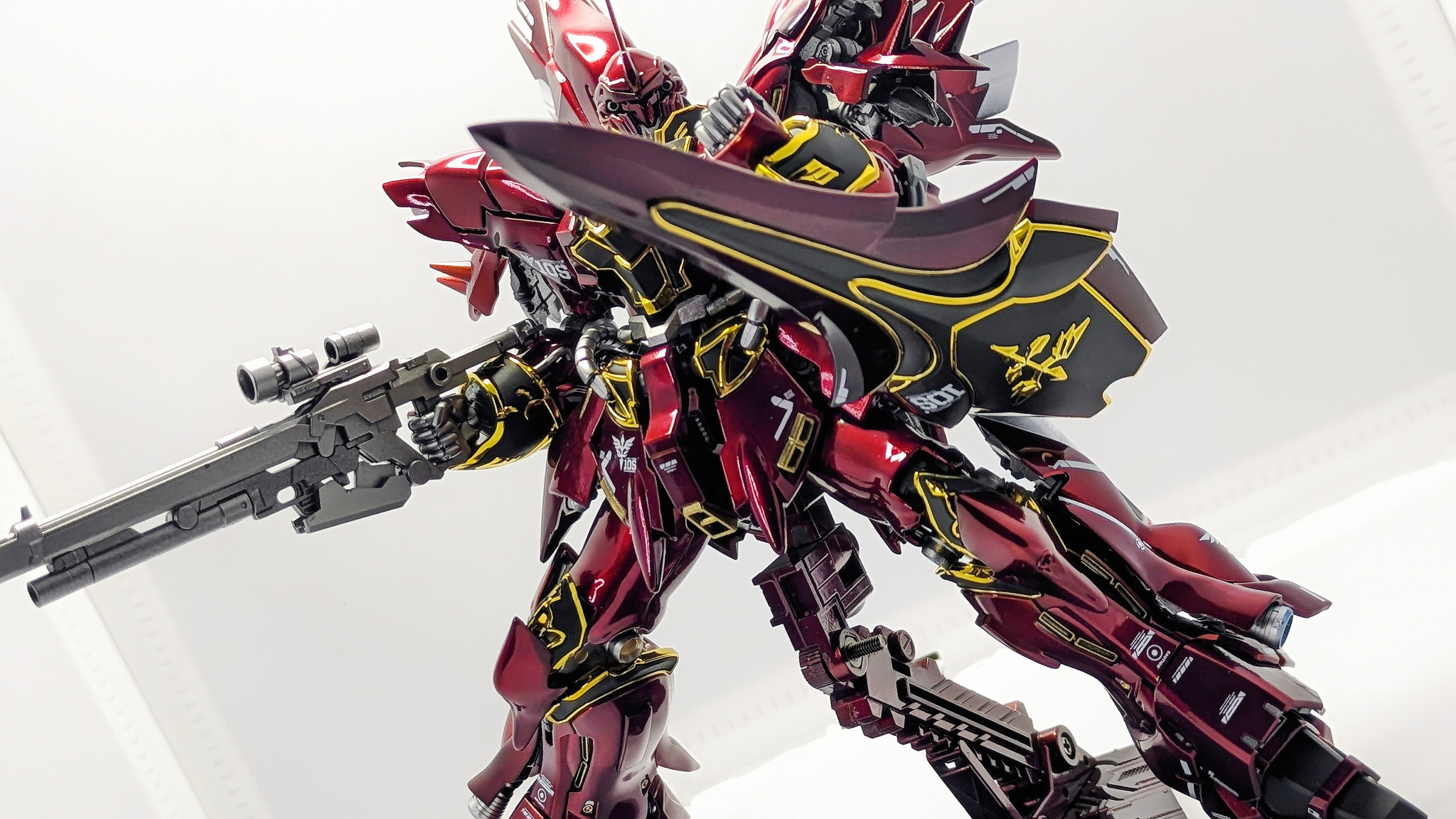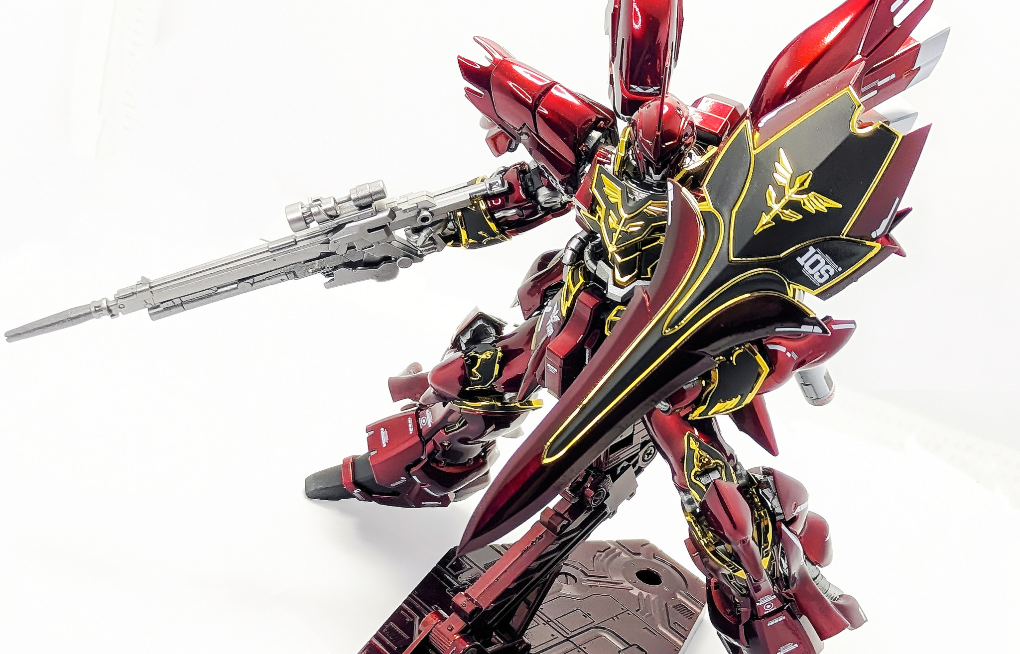 今回は巷で話題の”真紅の三倍速”ことRGシナンジュをキャンディ塗装で作製しました。