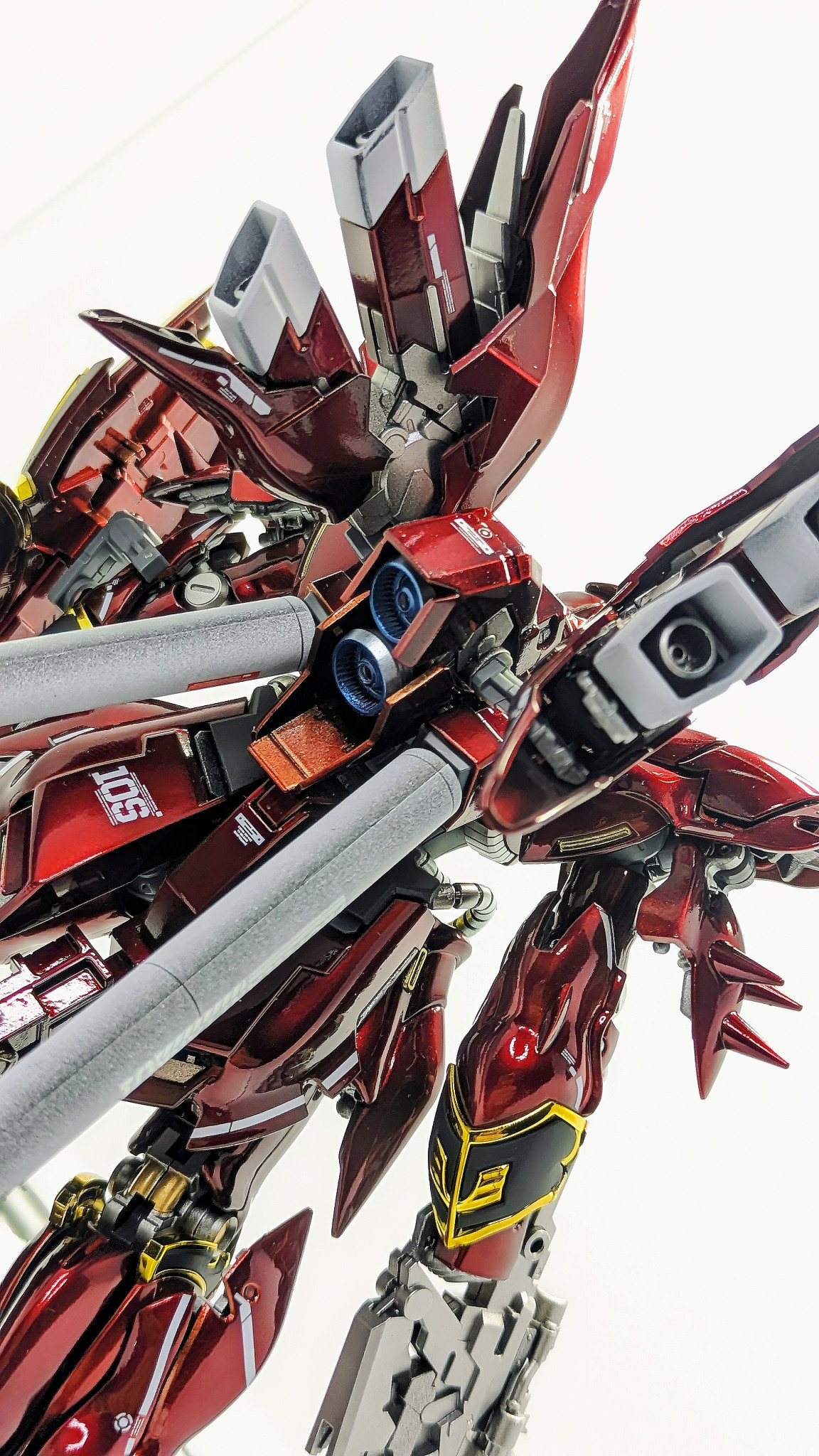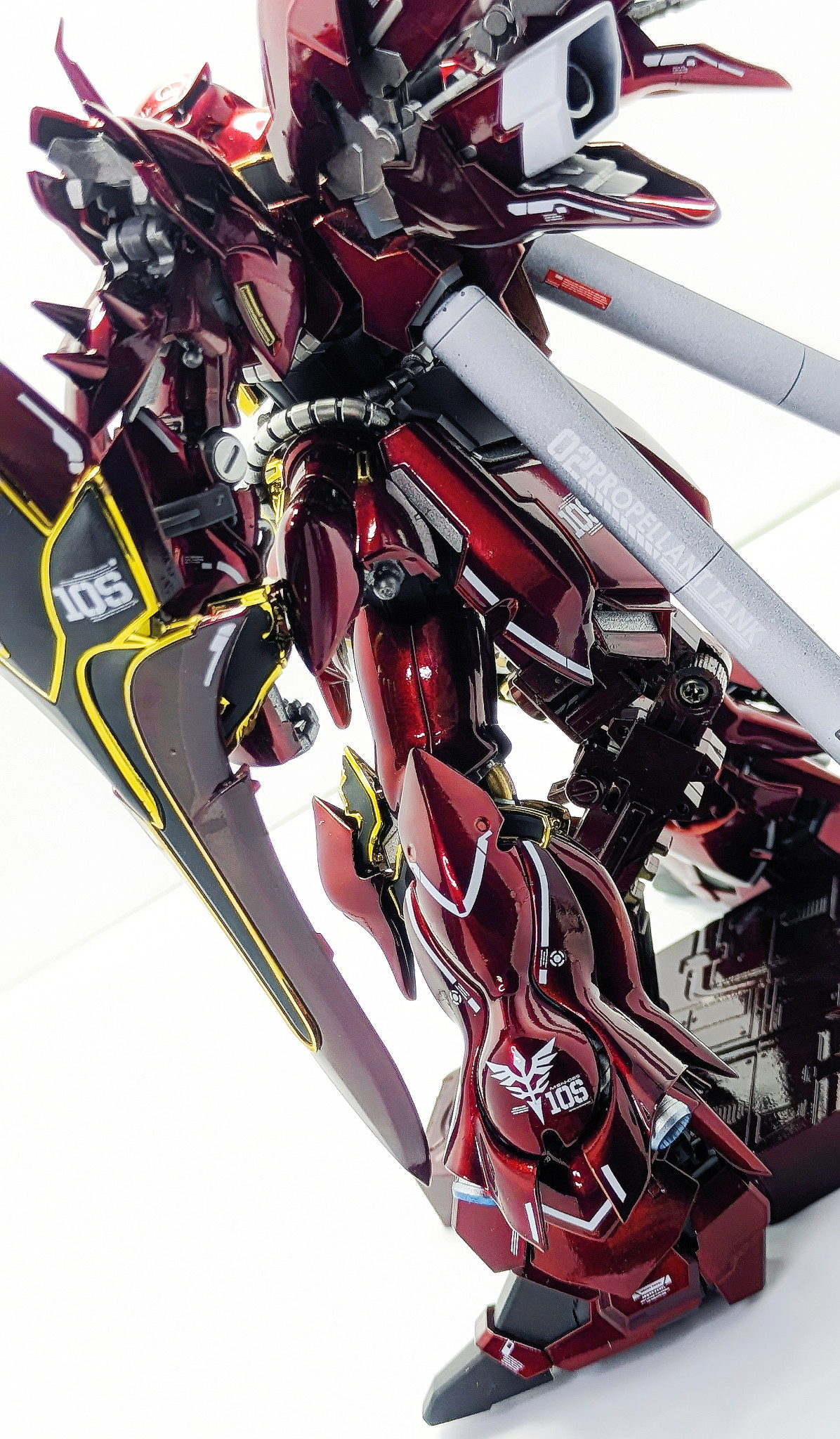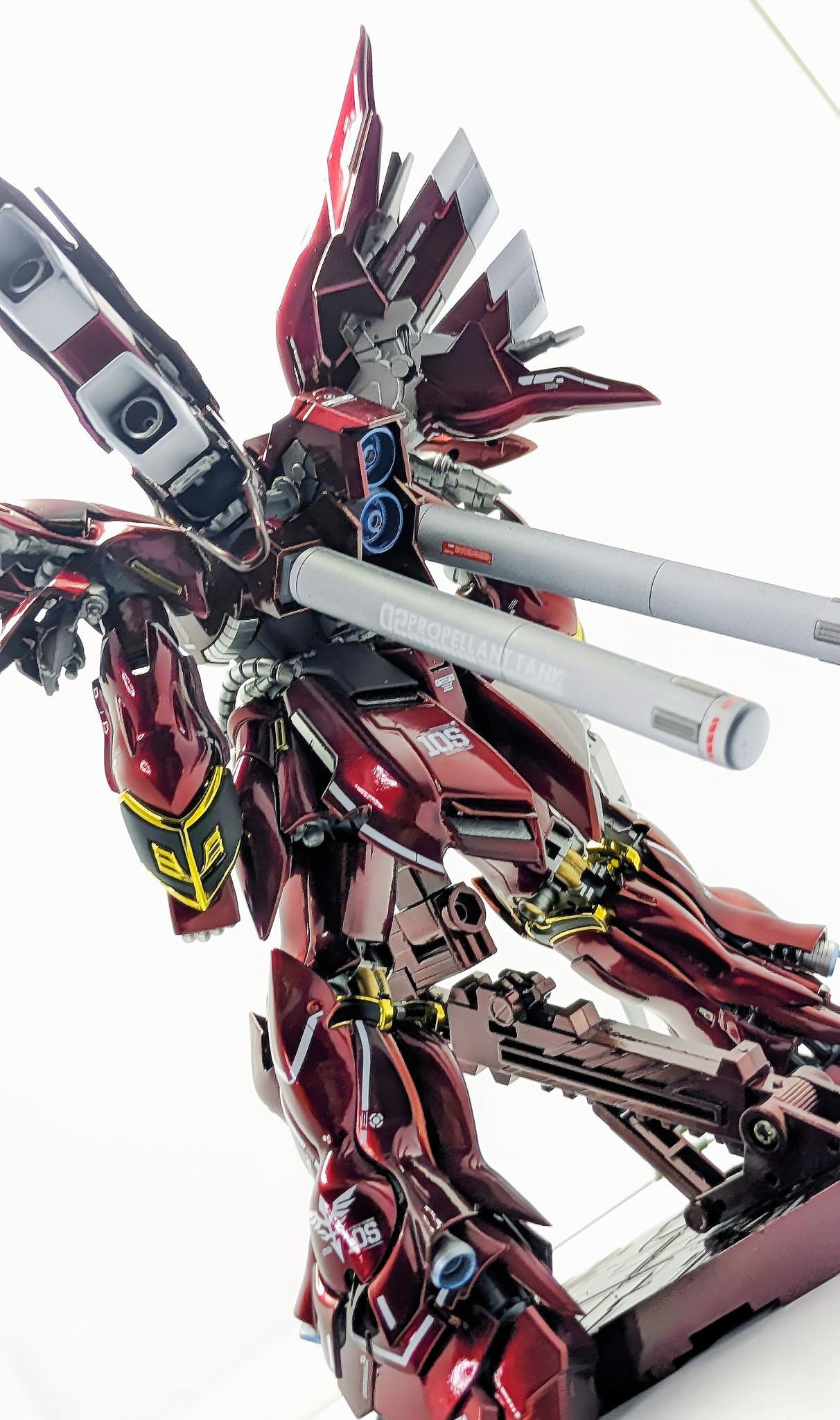 今回は巷で話題の”真紅の三倍速”ことRGシナンジュをキャンディ塗装で作製しました。