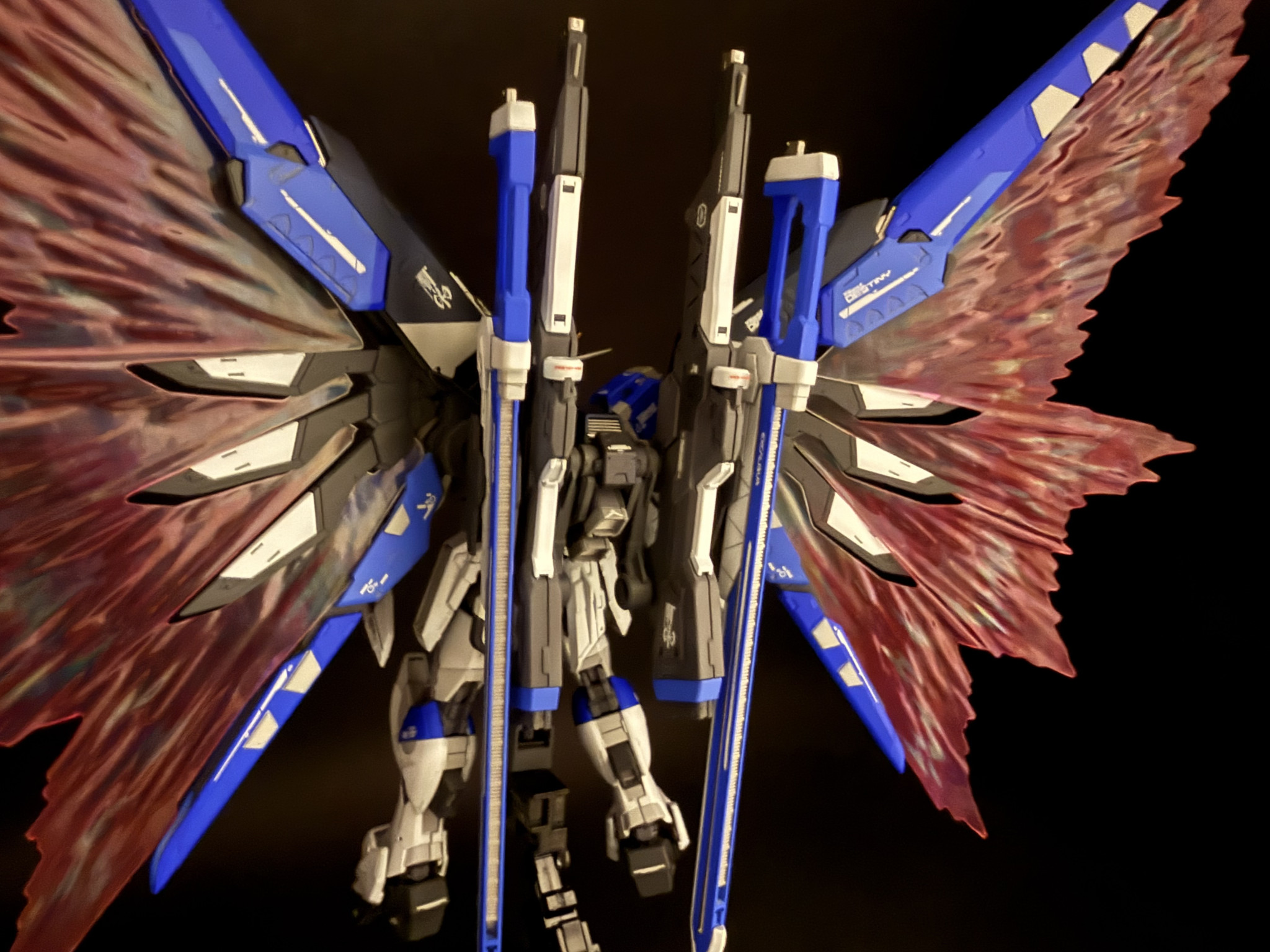 背中から。プレバンで購入した光の翼も取り付けてみました。翼に色を加える勇気はありませんでした笑