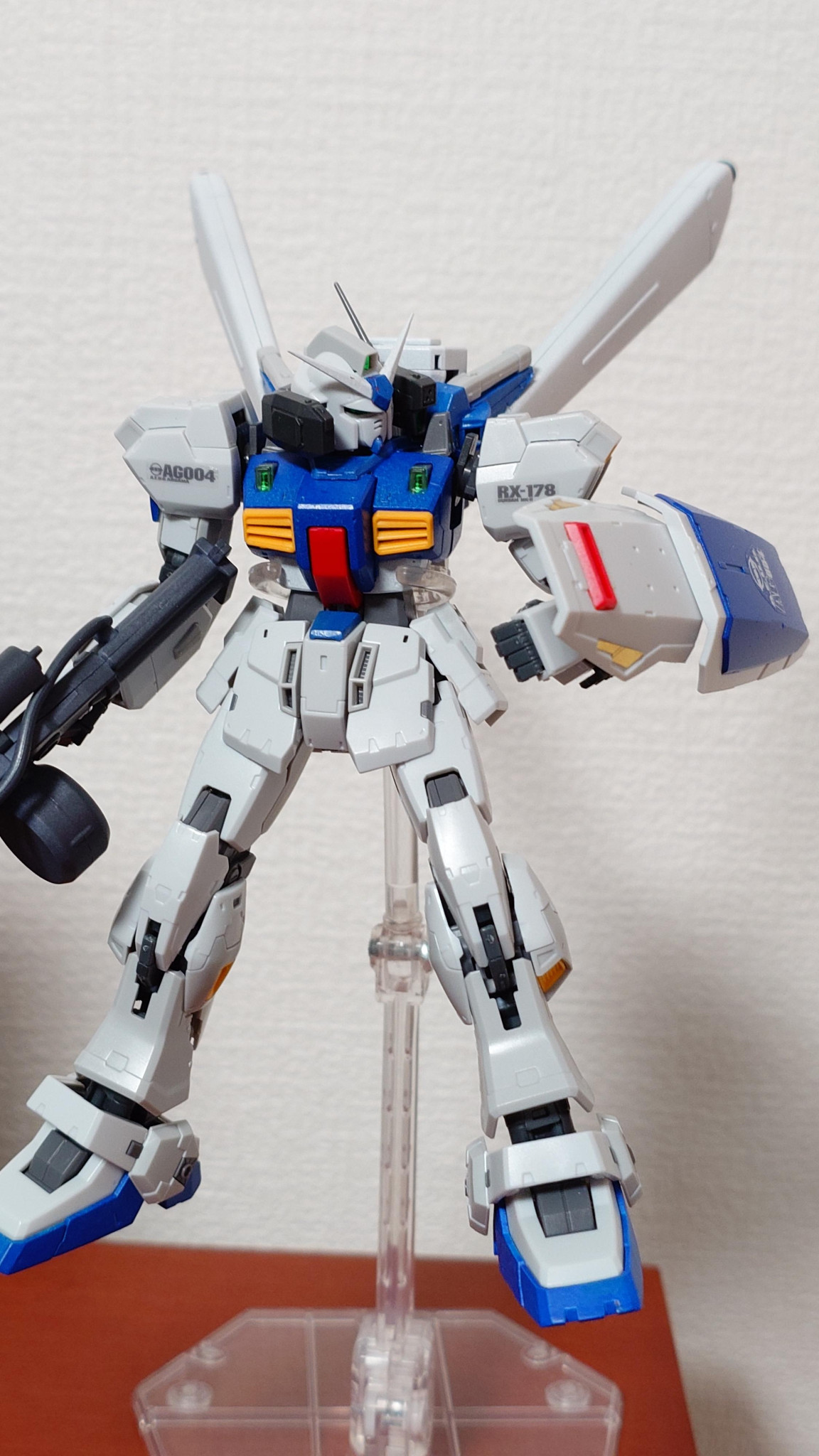 TITANSで制作されたMk-Ⅱが、ガンダムMk-II 試作0号機(Mk‐Ⅱもプロトタイプなのにプロトタイプ・ガンダムMk-IIがギレンに出た時は衝撃だった)の延長にあり(シールドGP01だもんね)GP01Fbの流れを組む機体ならAUGに行けば『データ検証はジオン系のメカニックが関わったGP04系列でも良いよね♪』と妄想しながら制作しました♪