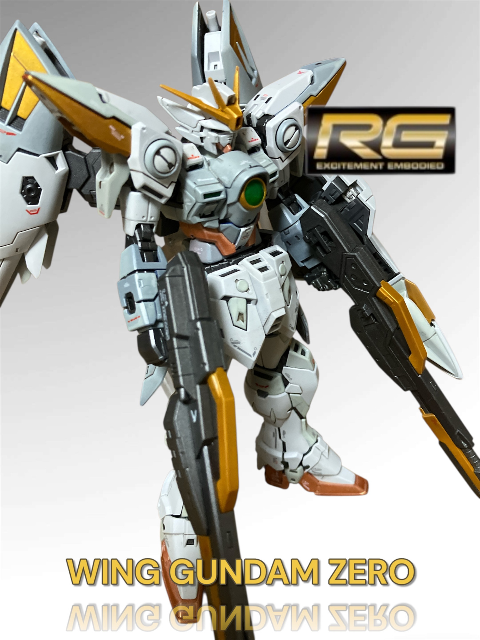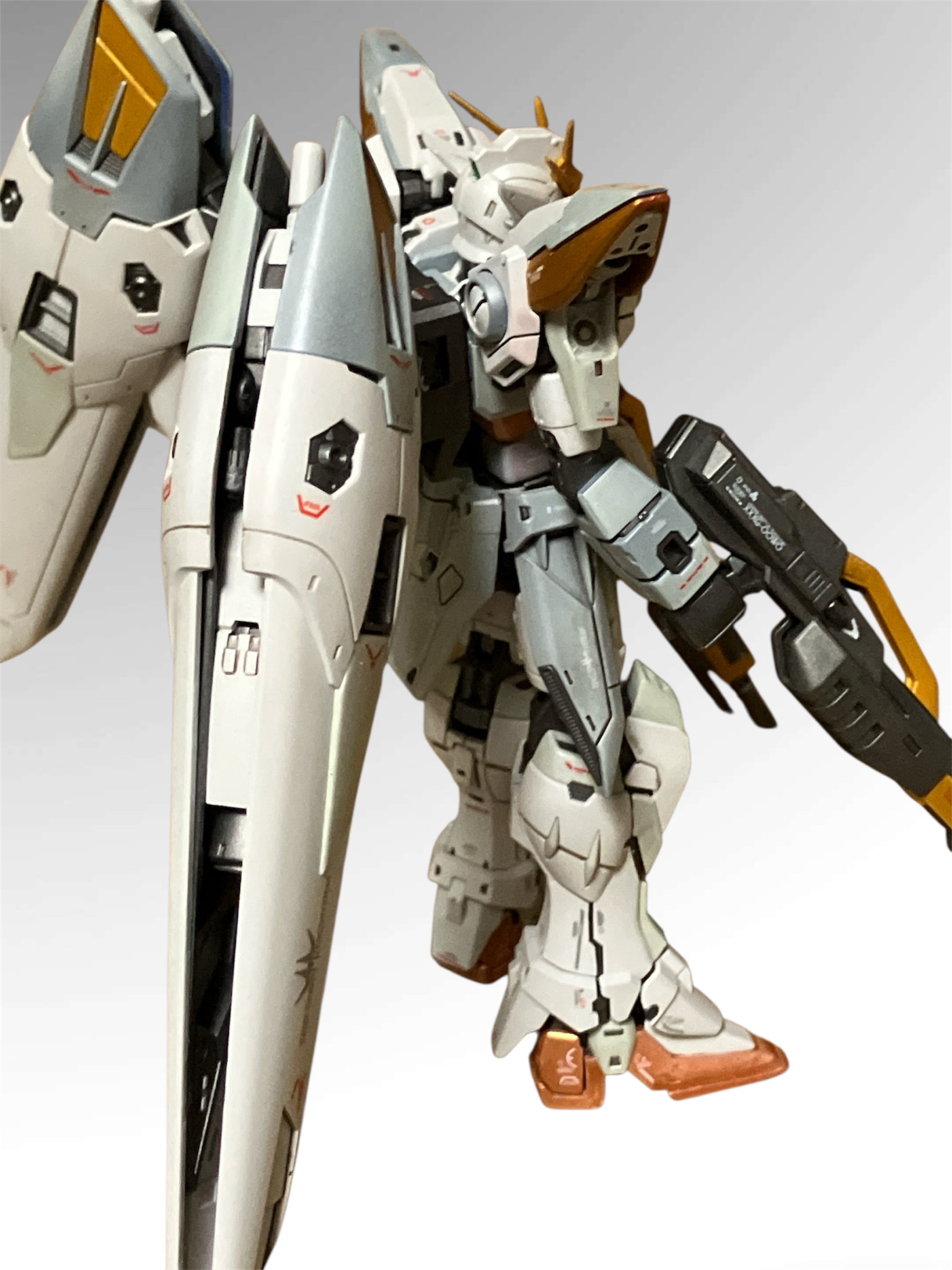 新製品のウイングガンダムゼロを全塗装しました。設定より淡い青…