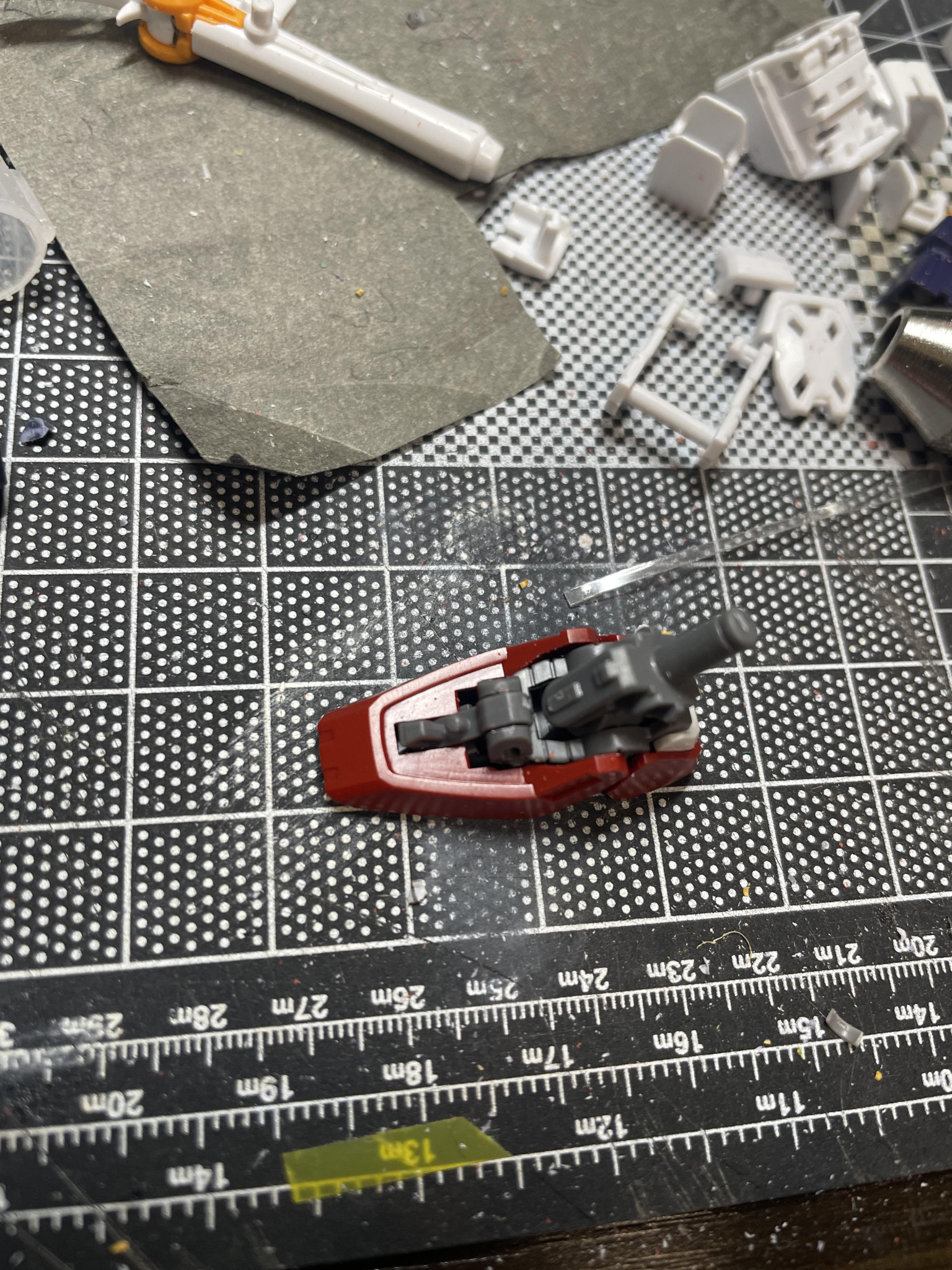 塗装前。RGはこのままでも充分かっこいい(*´﹃`*)ただこのキット、すごいたたせずらい。足首に加工が必要でした。あと原作っぽくバーニア周りを尖らせました。