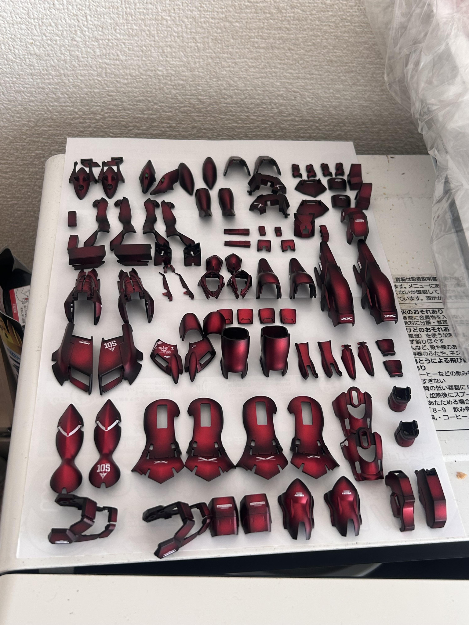 シナンジュの耐ビームコーティングが5層らしいので、キャンディ塗装もクリアレッドを設定に合わせて5層にしてみました🟥