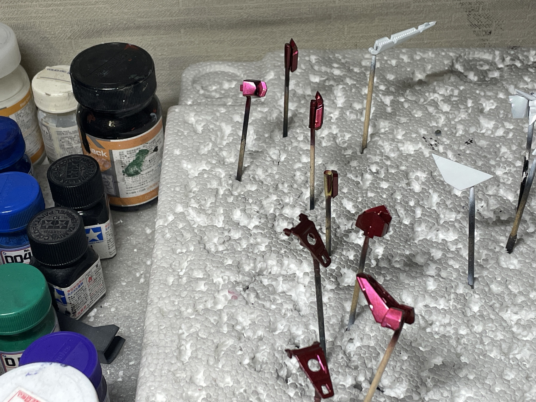 金メッキパーツには光沢クリアーを三重くらいランナー塗装してから作製。