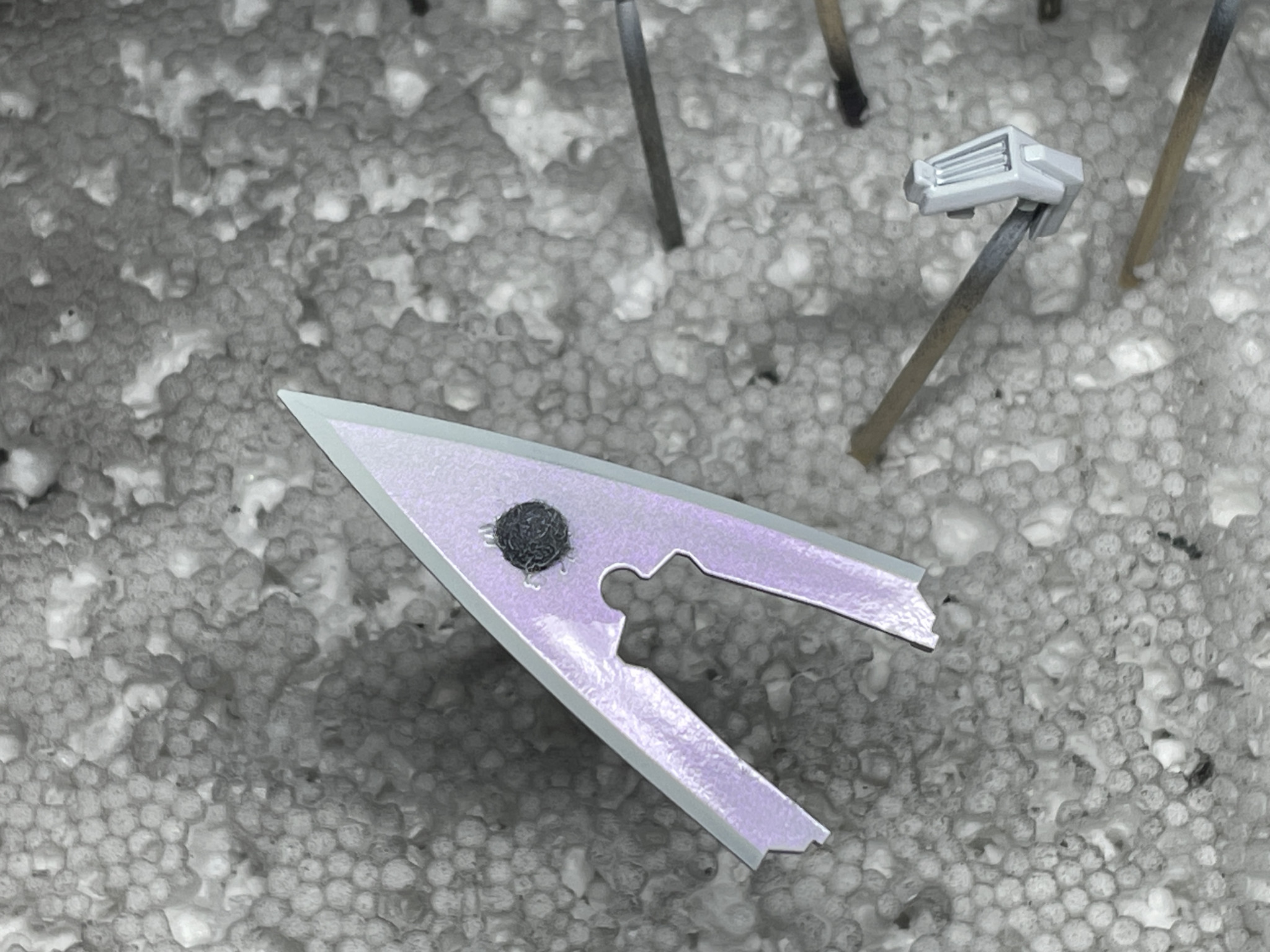 最初はホワイトを光沢クリアー仕上げで考えてましたが、レクイエム跳ね返すレベルならもっとギラギラやろ!と思い偏光パール仕上げに急遽変更しました。