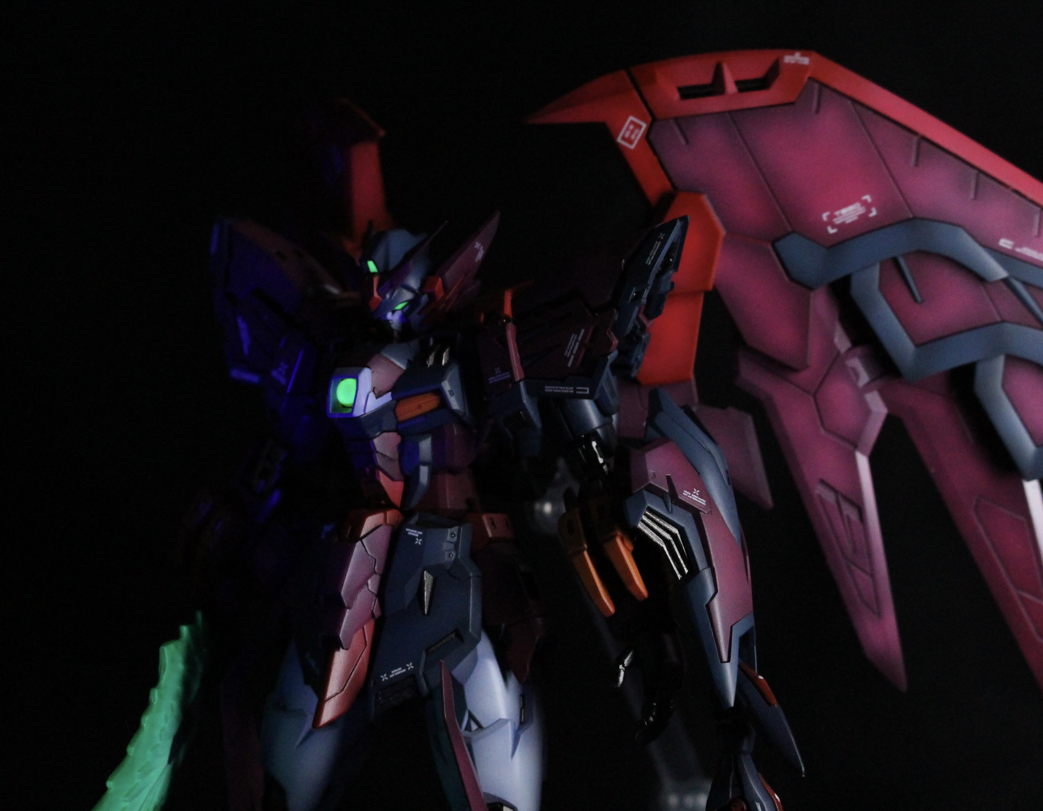 普段蛍光塗料は使わないんですけど,どーーーーしてもUVライトで光らせたかったのでタンスの奥から引っ張り出してきました。(実はエピオンのクリアーパーツは塗装しないでもライトで光るんですけどね)