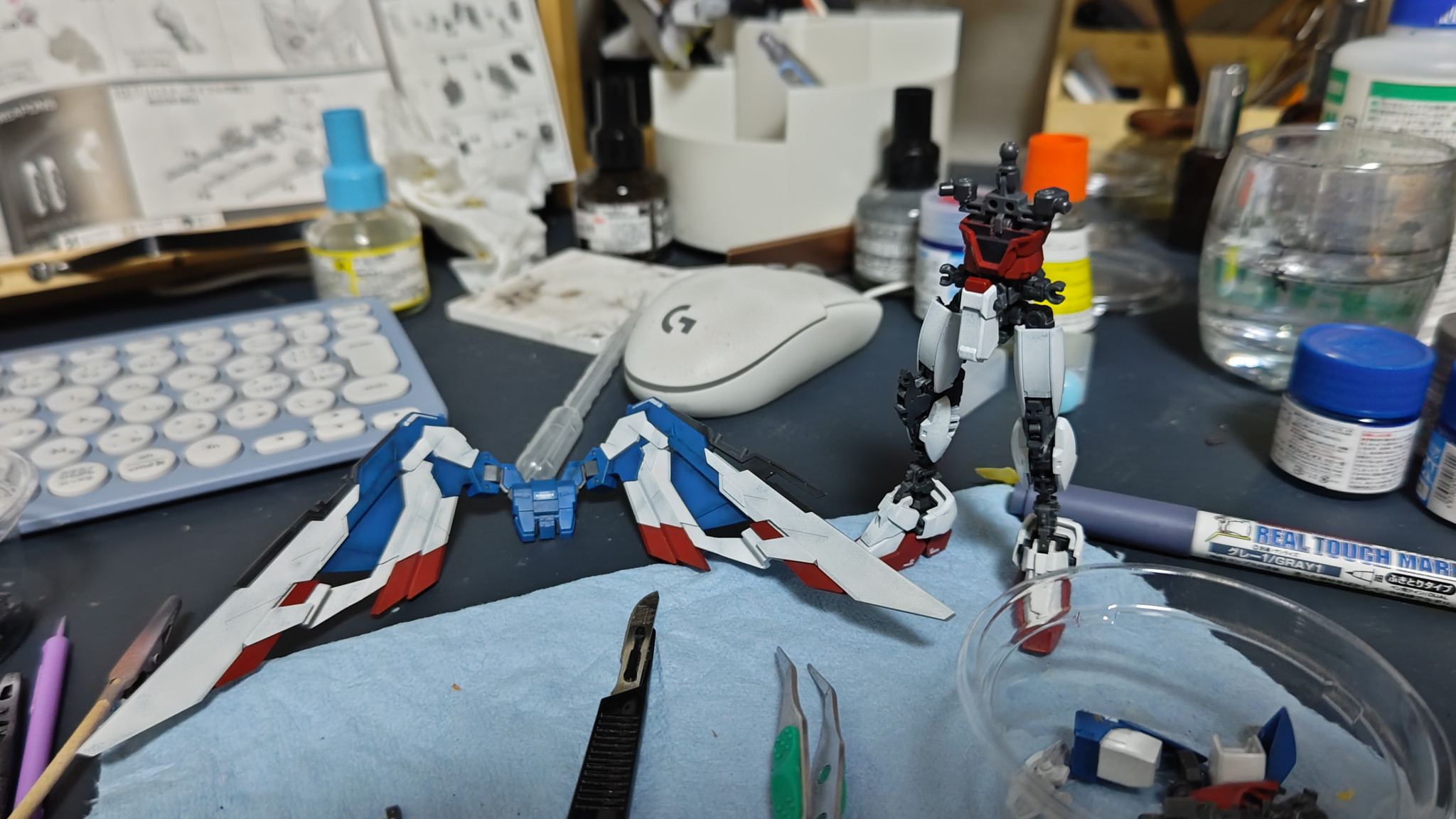 クリスタル部分も多い機体ですが、今回はクリアパーツに工夫をして塗装したのでいつもよりきれいに発色させることができました。