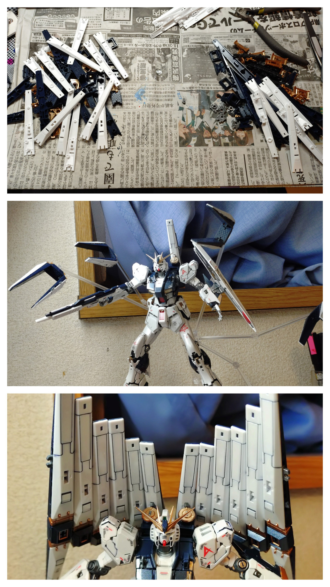 歴代のνガンダムと。今年初めて作製したSDEXのνガンダムと比べると、幾らか仕上げ方がそれらしくなって来たのかな。