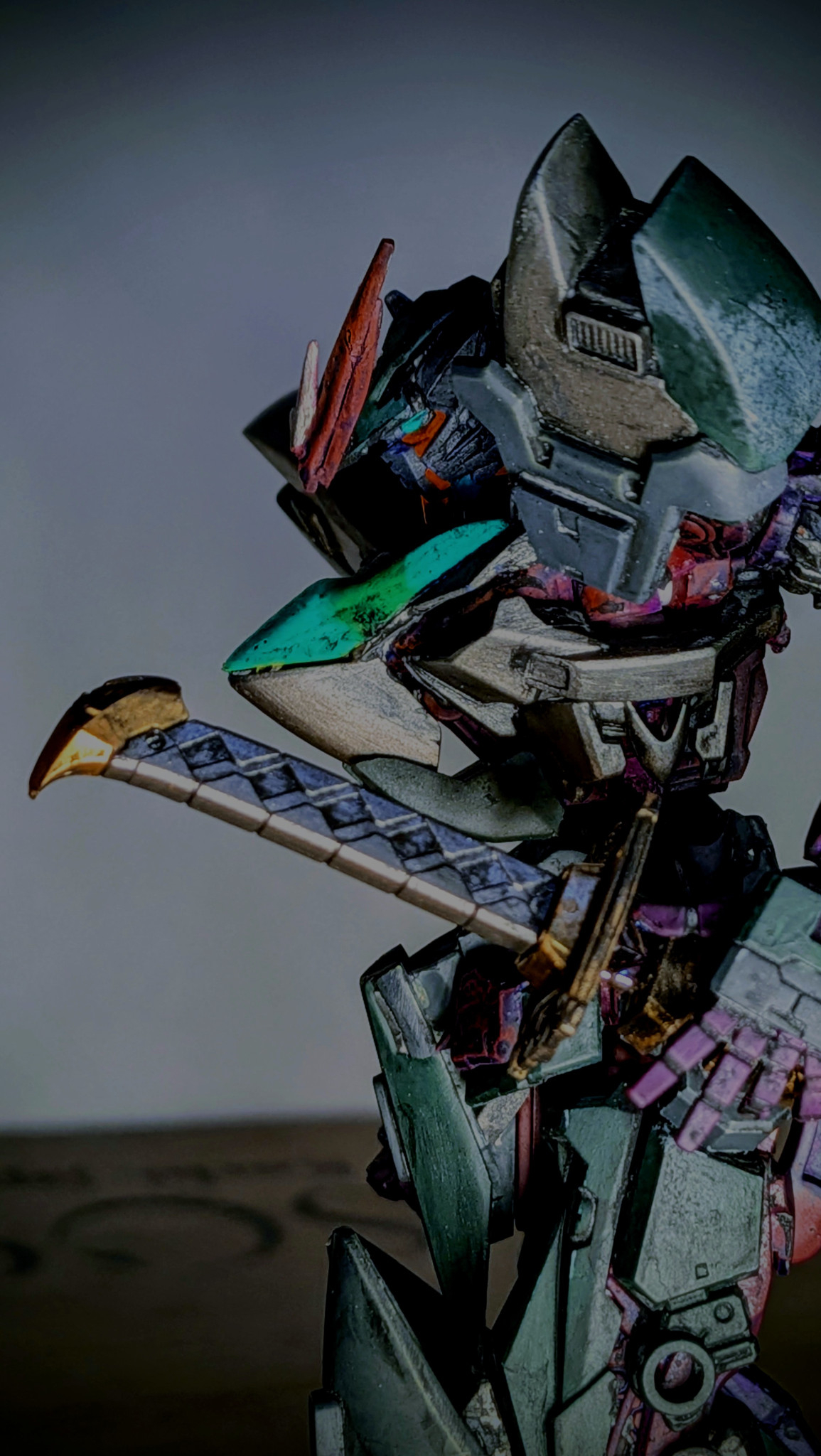 本体はRGアストレイレッドフレーム、装甲はHGのV2アサルト、バックパックはコトブキヤの改造パーツにSDのアルトロンでミキシングしました。