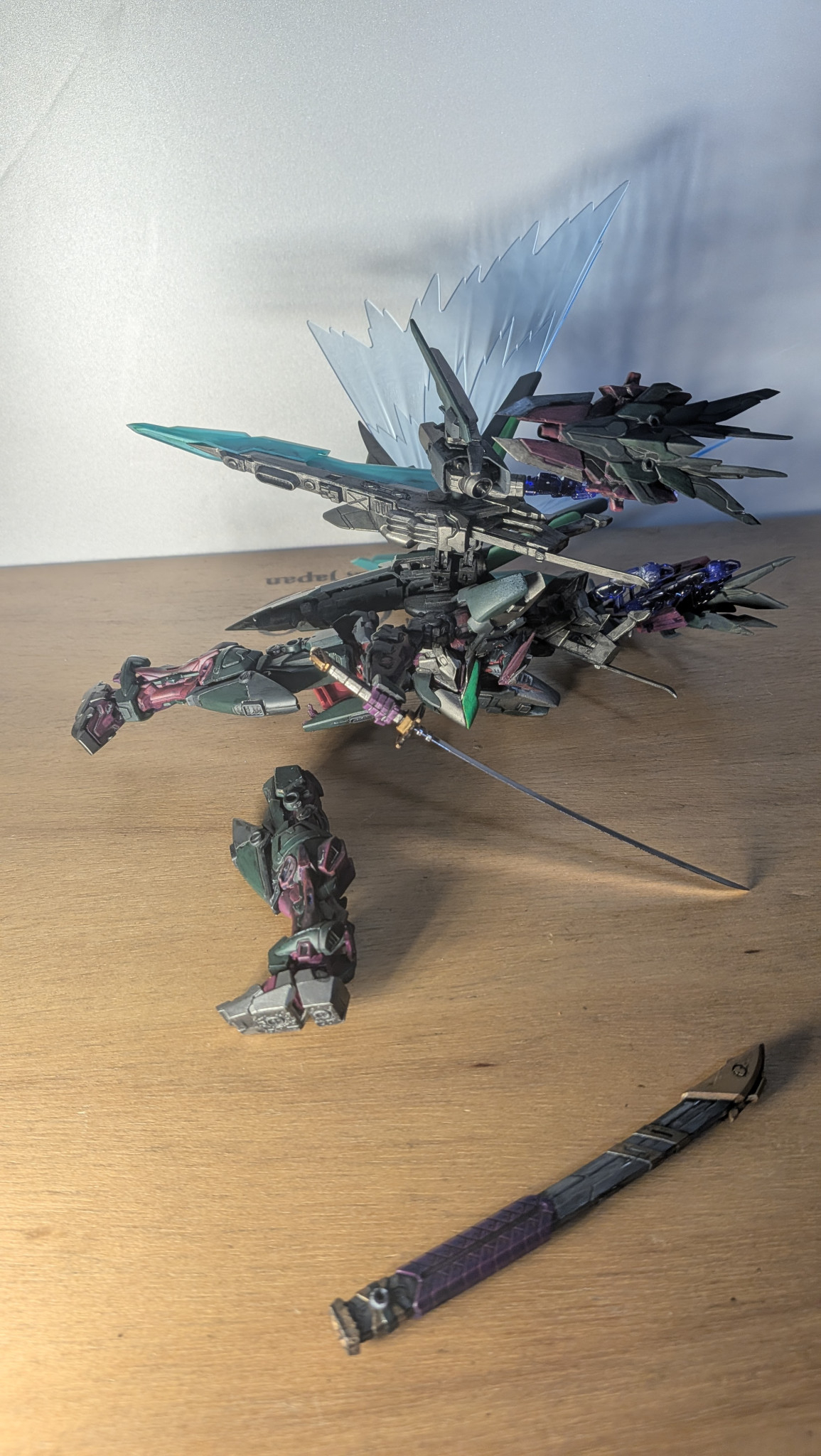 フレームを紫にラッカー系スプレー塗装したら、いろんな関節部が砕け散りました😭RGのフレームはABS樹脂って事を完全に忘れてました😅