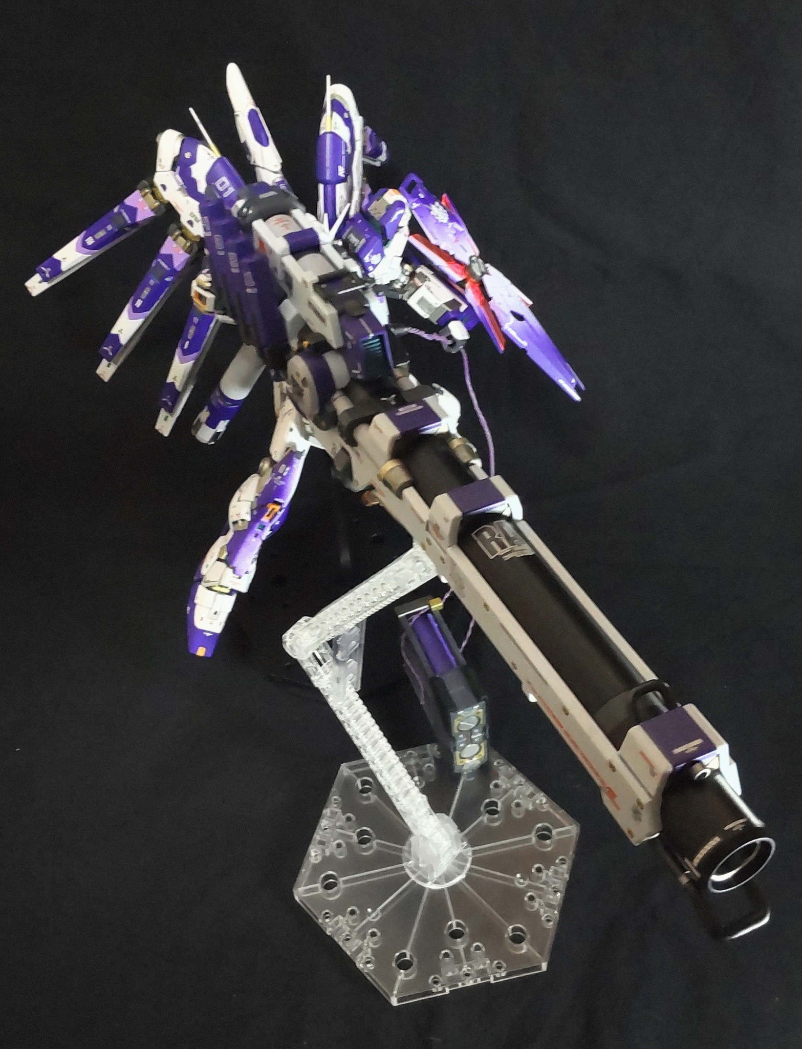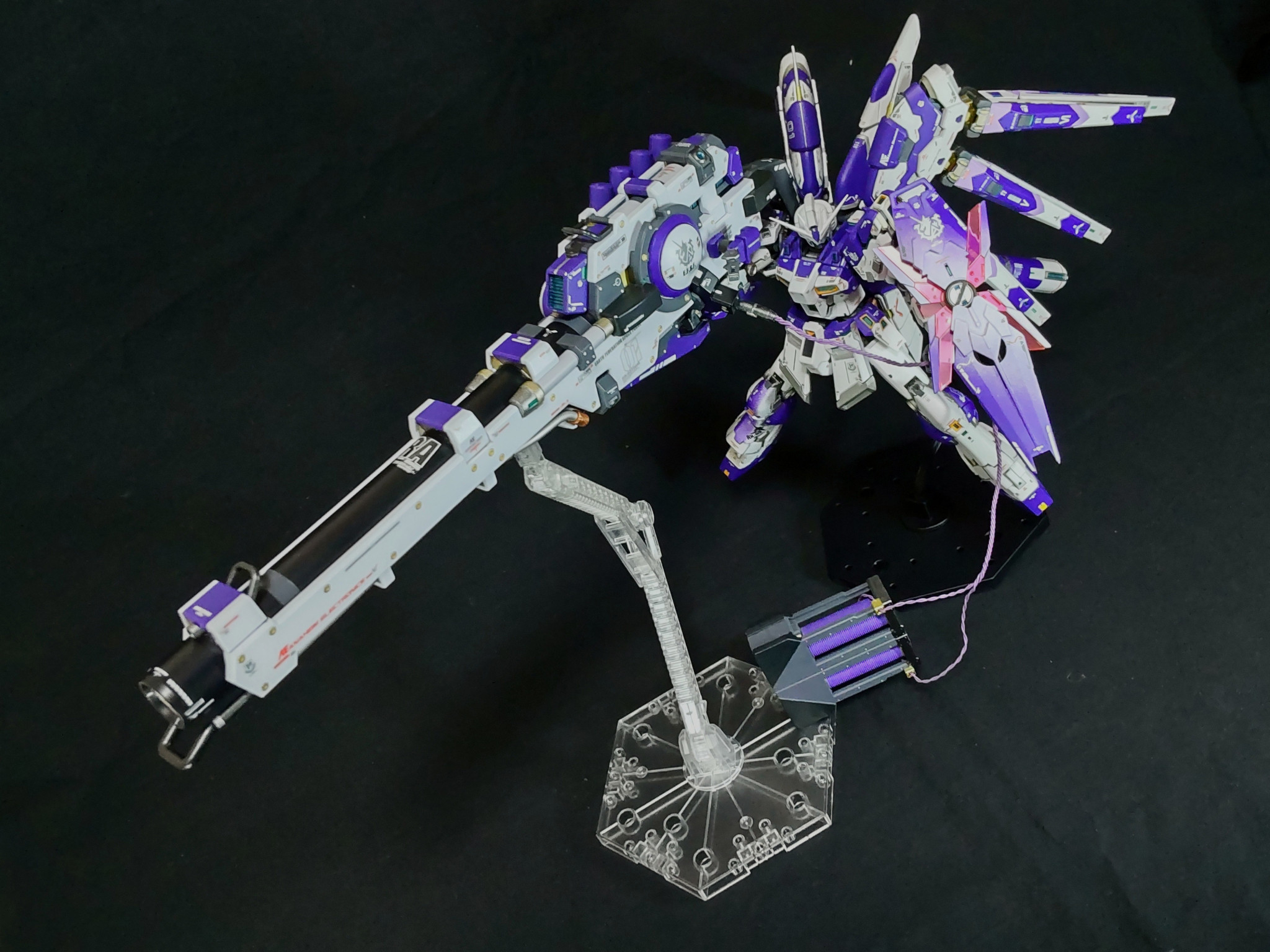 部分塗装の簡単フィニッシュ😁。νガンダムに合わせてパープルとメタリック系で部分塗装してます😆。