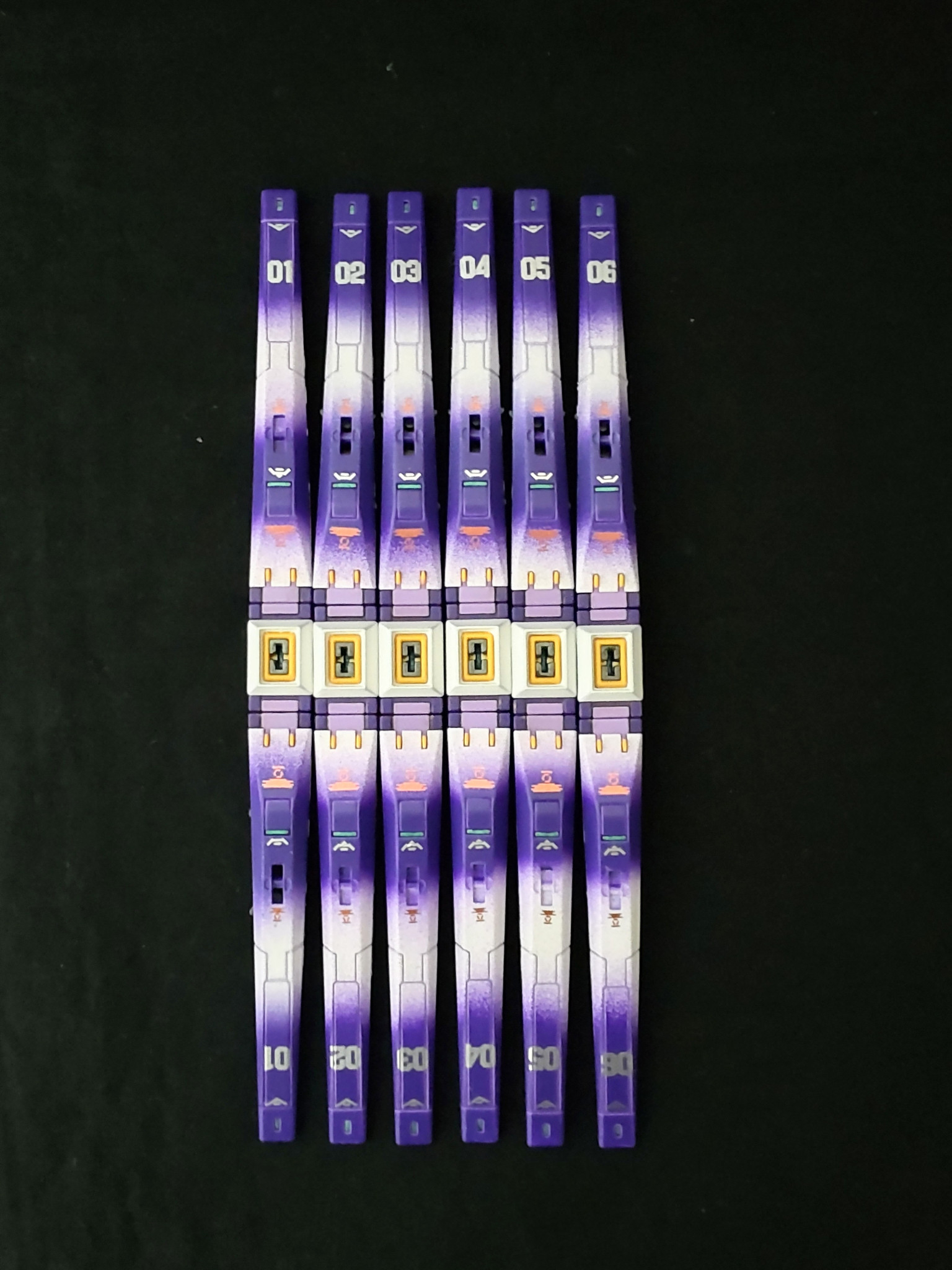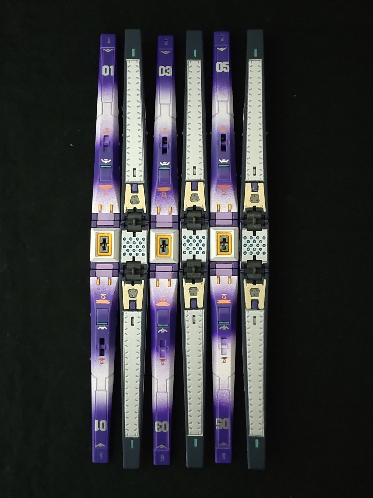今回のフィン・ファンネルはこんな感じにグラデーションです😁。展示されてたメタルビルドの方は青1色でしたが、グラデーションに変えてみました。