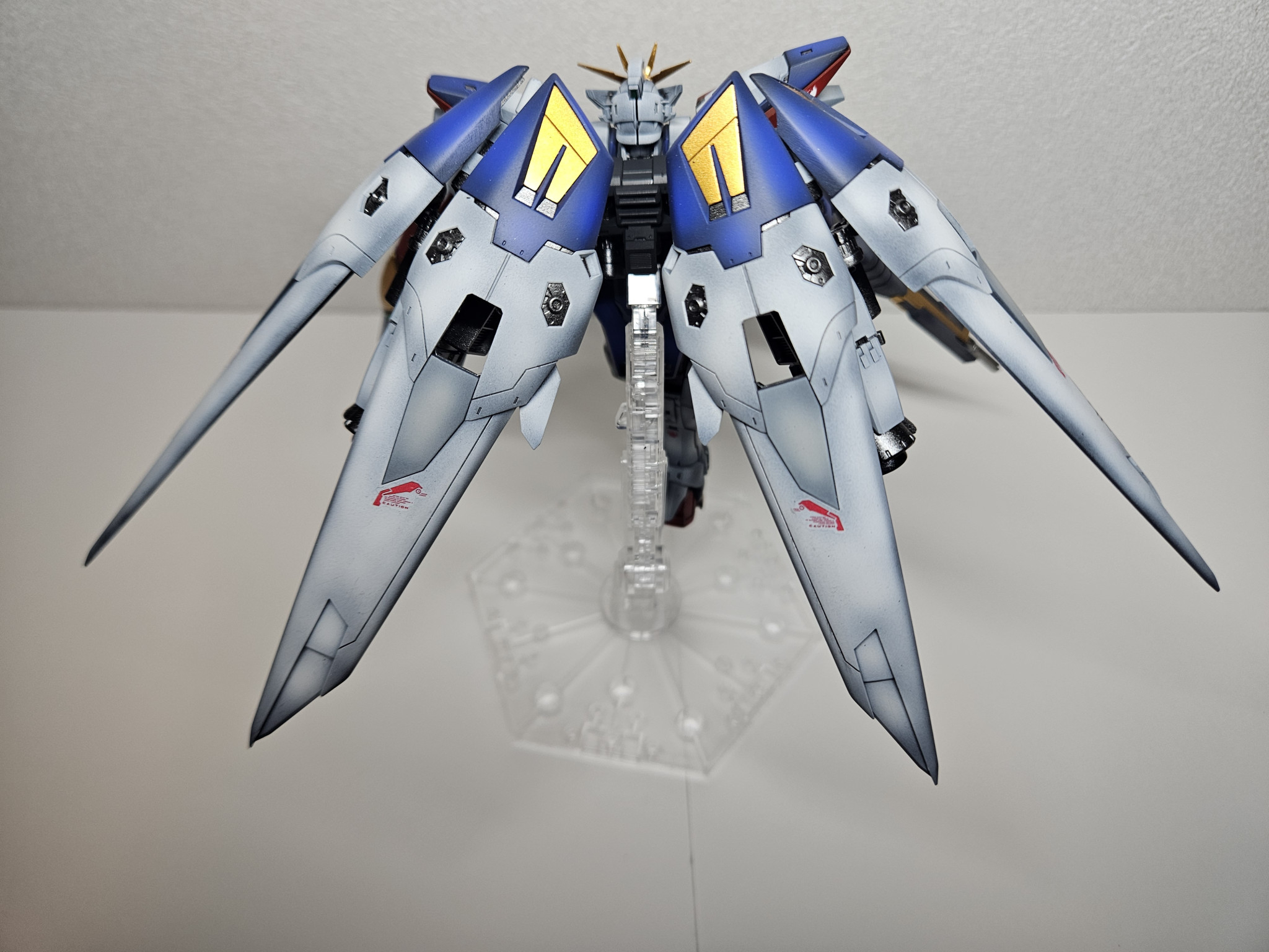 後ろのバーニア内部はメタリックブルーにしました。ギミックでせり出したときに非常にカッコ良くなってます。