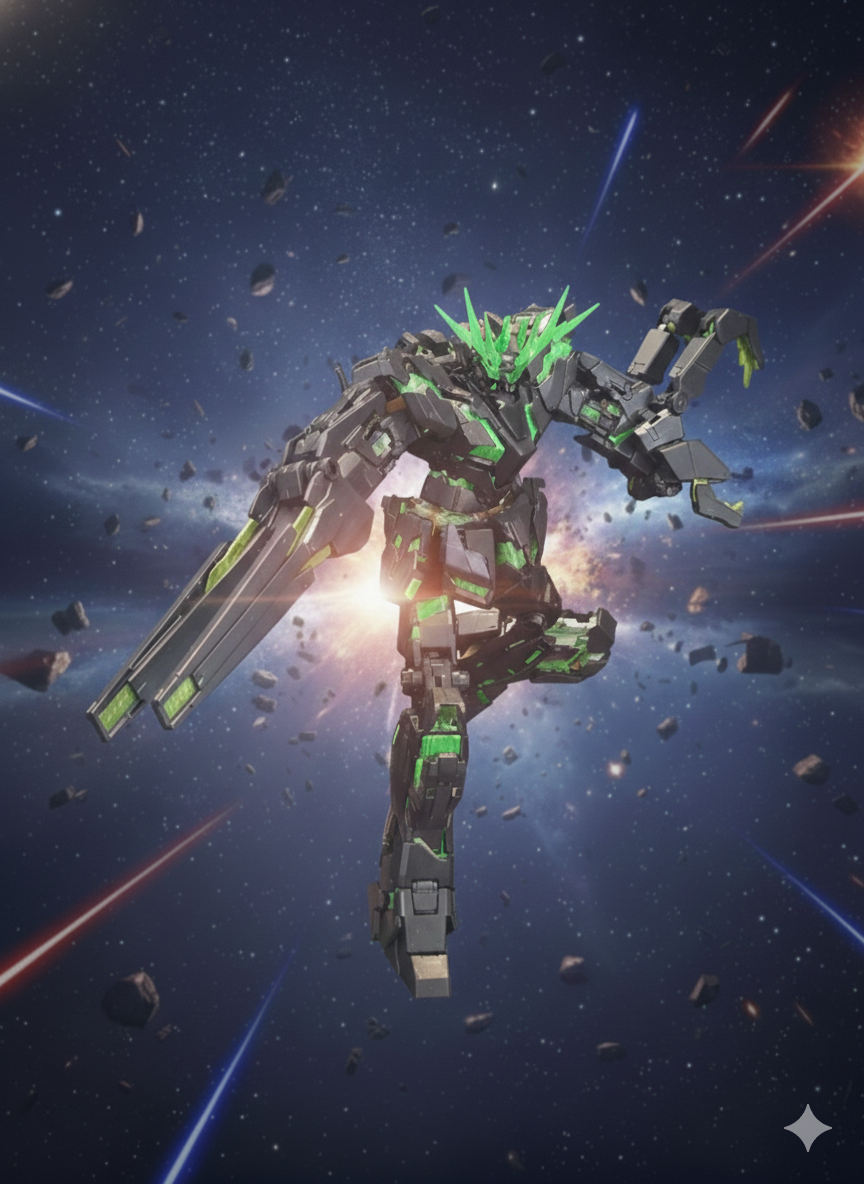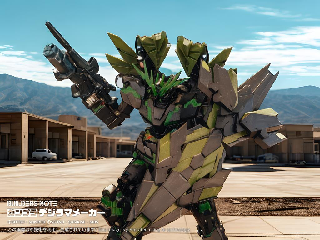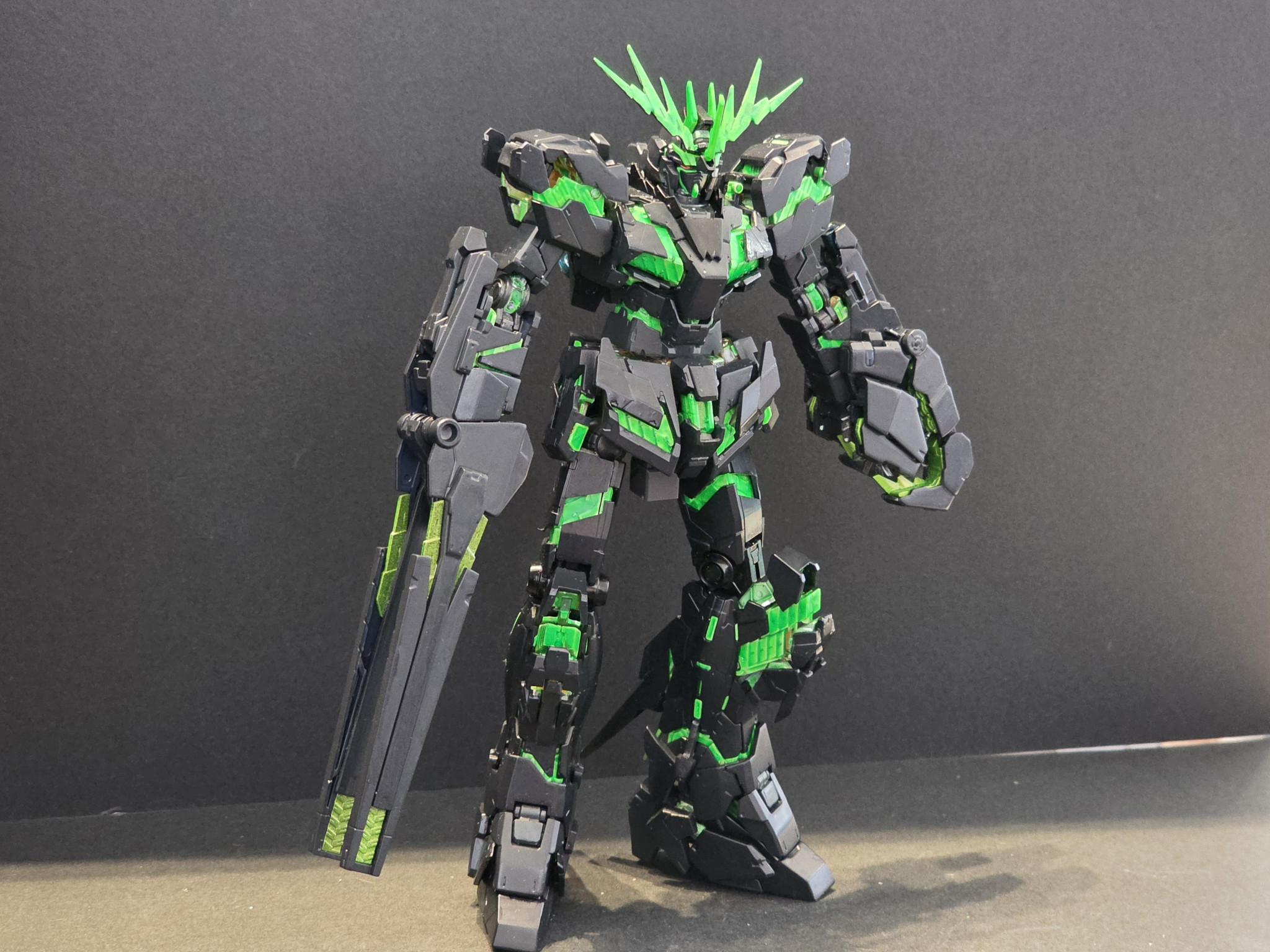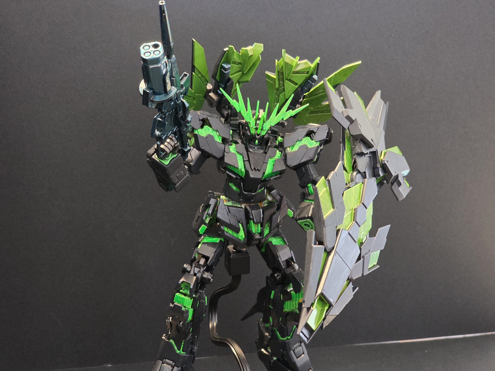 アクセントのゴールドもボディはブラック、武装はグリーンで統一。