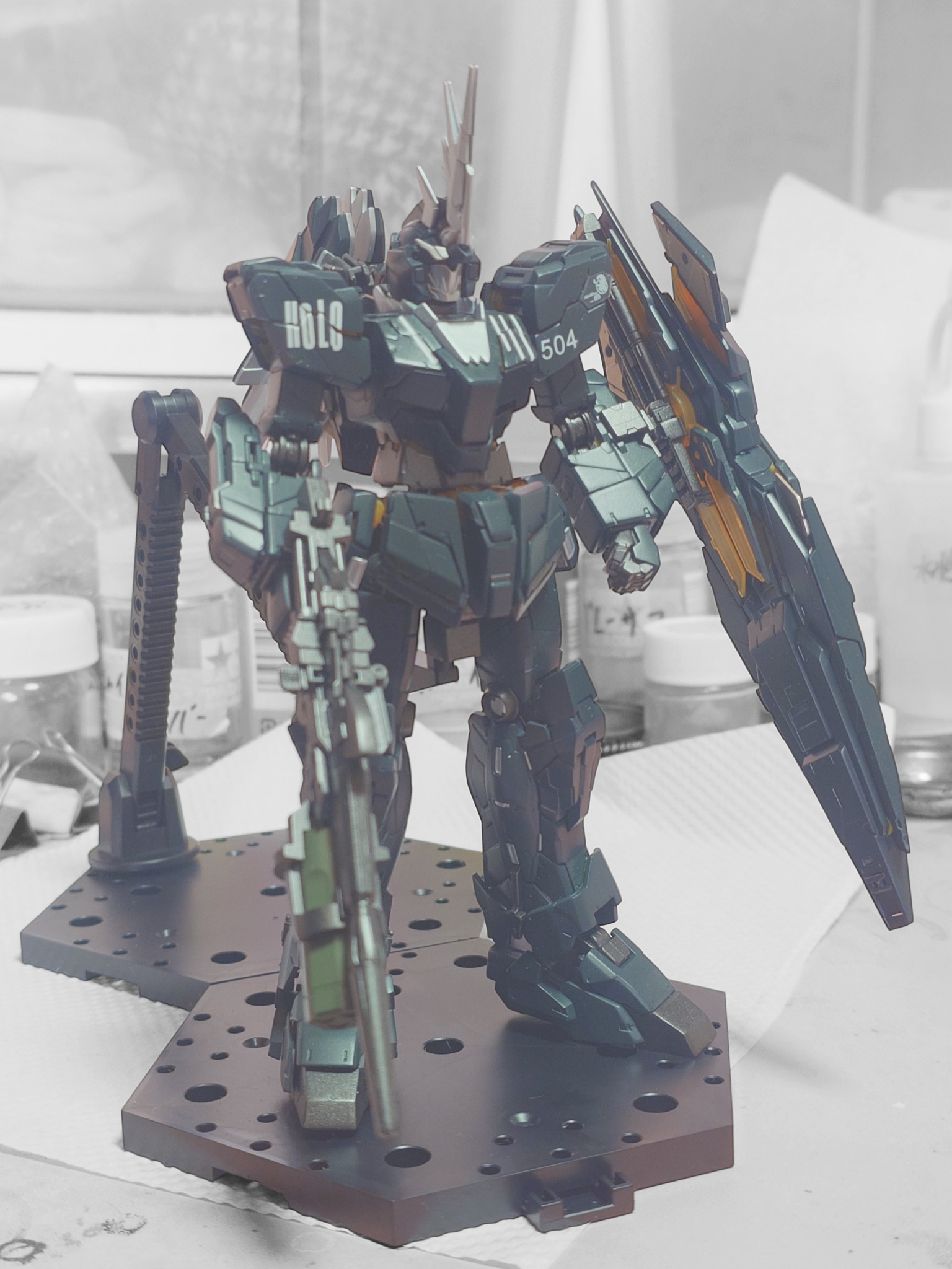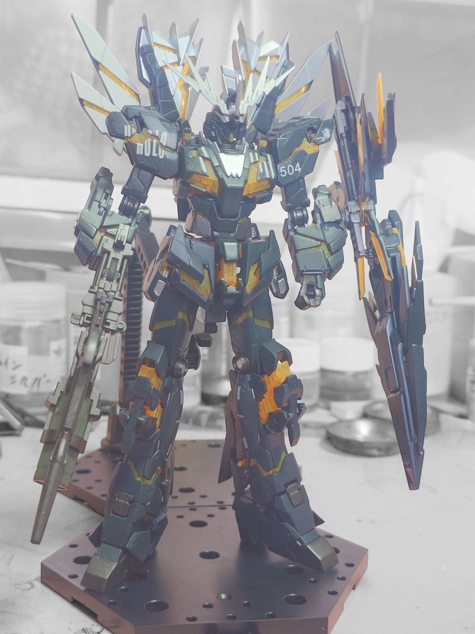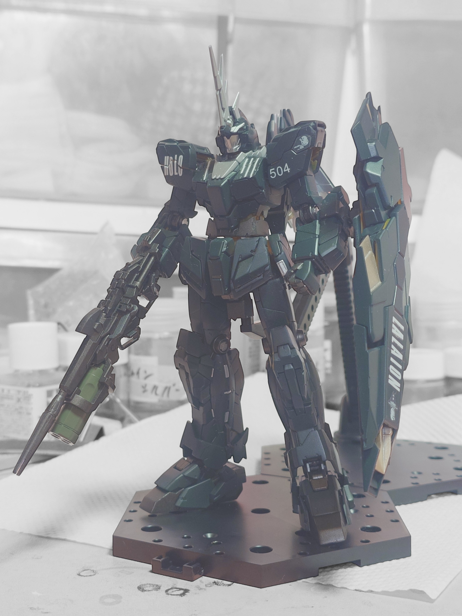 両肩にはHOLOとねぽらぼ順番で504の番号を水転写デカールで表現しました。
