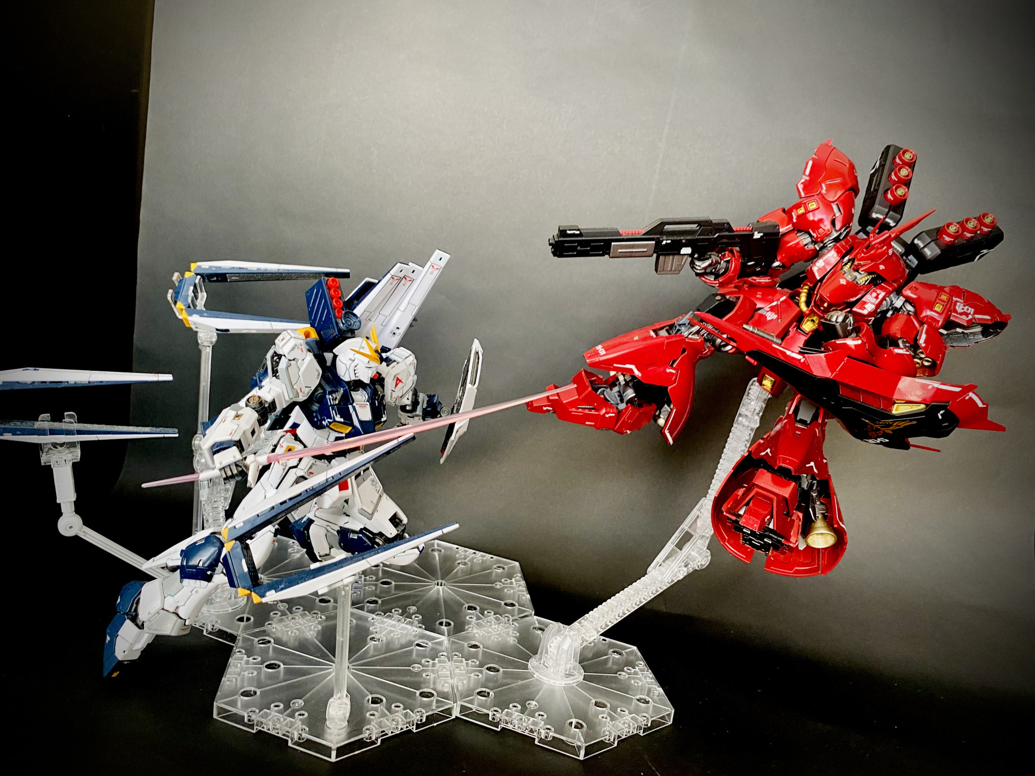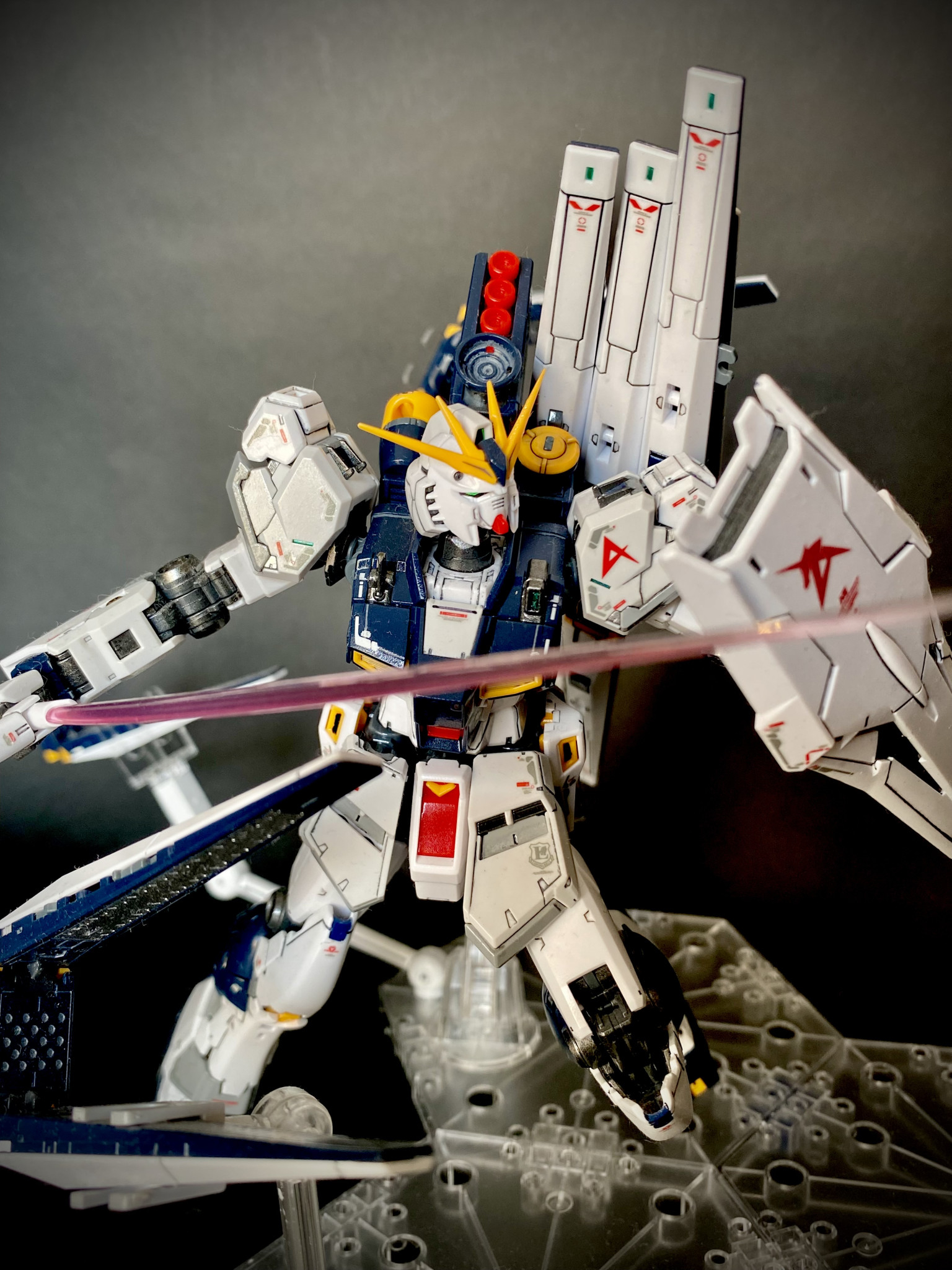 MOK-KUN RG 2026.01/25更新 RX-93 νガンダム 56 32 いいねしたモデラー(32) 0 0 作品を共有 プラモデルを初めて間もなくして作ったRGνガンダムです。 νガンダムは私が大好きな機体の一つです。プラモデル作成の経験が浅く、加工は見真似で部分塗装を施した程度ですが、さすがRGですね。こんな私の技術でもそこそこの雰囲気が出ました。アムロとシャアの最終決戦!シャア「シャア•アズナブルが粛清するのだ」アムロ「エゴだよ、それは!」1/144スケールとはいえ、機体が大きい+ファンネルを展開しているので背景を組むのがが大変でした。お目汚し失礼しました。 アムロ νガンダム サイコフレーム 機動戦士ガンダム逆襲のシャア 部分塗装 コメント コメントをして応援しよう コメントにはログインが必要です MOK-KUN 仕事と子育ての間時間に作成してる初心者リビングモデラーです。 5 MSN-00100 百式 今回は百式です。 。成形色では金色感が出ないので、全塗装をし… 8 RX-178ガンダムMk-Ⅱ ガンダムベース限定MK-Ⅱです。 7 MSM-07ズゴック HGズゴックです。 7 ガンダムRX-78NT-1アレックス アレックスは私が最も好きなモビルスーツの一つです。 MOK-KUNさんのページ この作品をお薦め作品に設定する Please login to update your profile! Please login to update your profile! Please login to update your profile! Please login to update your profile!
