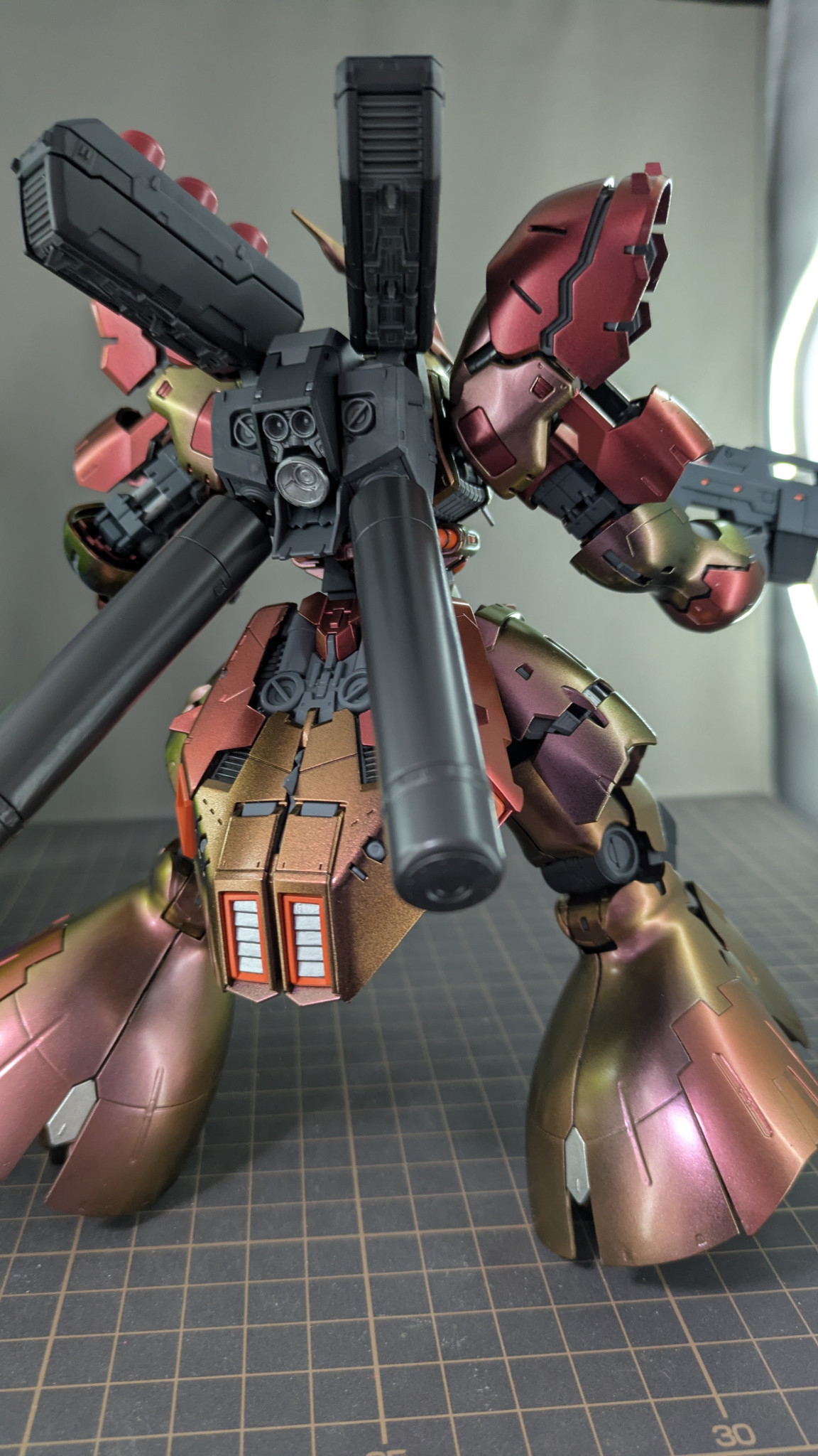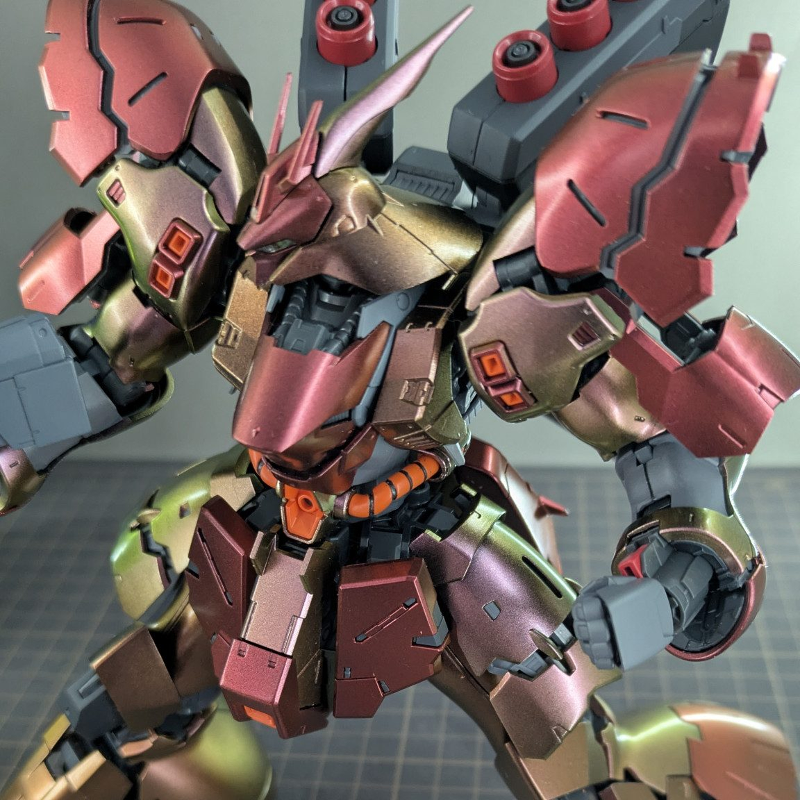ブラックライターな… RG 2026.01/27更新 総帥専用機 176 37 いいねしたモデラー(37) 0 0 作品を共有 ガイアカラーの偏光塗料で赤系ツートンを再現してみました。プリズムマグマレッドとプリズムマゼンタゴールドを使い、内部フレームはほぼメカサフとタミヤ缶スプレーのガンシップグレーです。 バストショットです。光の加減でゴールドがガッツリ出ちゃってますね。バックショットです。プロペラントタンクはグラファイトブラックです。サイドショットです。俯瞰ショットです。 サザビー 2026年最新作 次は普通に赤くしよう。 コメント コメントをして応援しよう コメントにはログインが必要です ブラックライターなお なにわのぱち組ベタ塗りモデラーです。 7 ガンダムヴィダール 1週間弱で仕上げたガンダムヴィダールです。 本体ブルーはガイ… 8 ナラティブガンダムVer.ka ナラティブガンダムを、約2週間で仕上げてみました。 本体のホ… 6 ジェガン MGジェガンをシンプルに組み立て、設定より鮮やかなグリーンじ… 5 ホビーハイザックです 先週の土日でサクッと仕上げたホビーハイザックです。ランナーか… ブラックライターな…さんのページ この作品をお薦め作品に設定する Please login to update your profile! Please login to update your profile! Please login to update your profile! Please login to update your profile!