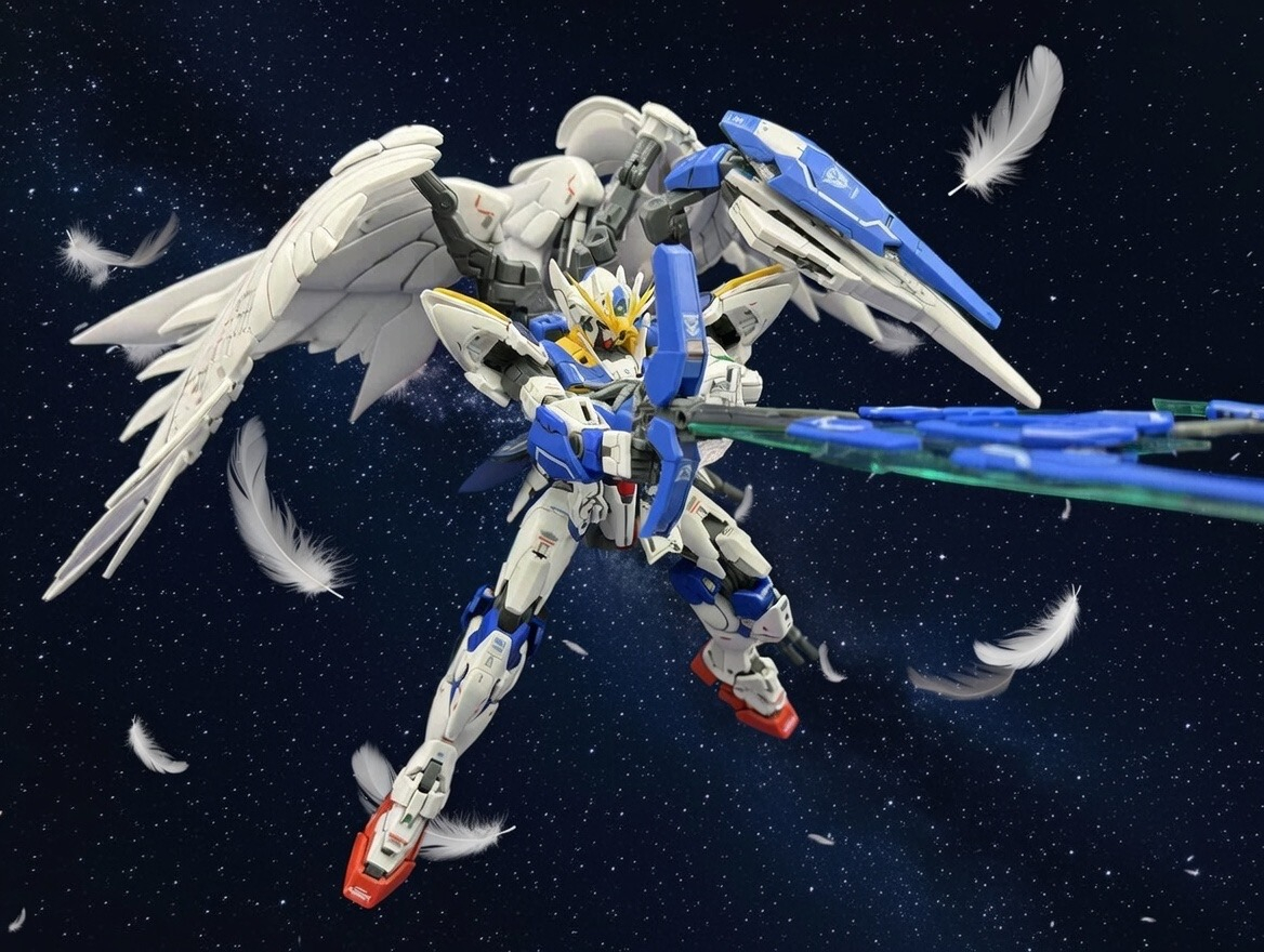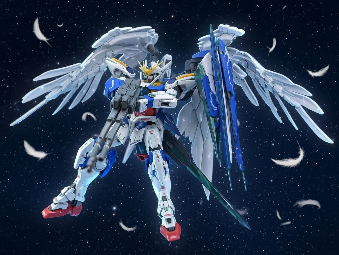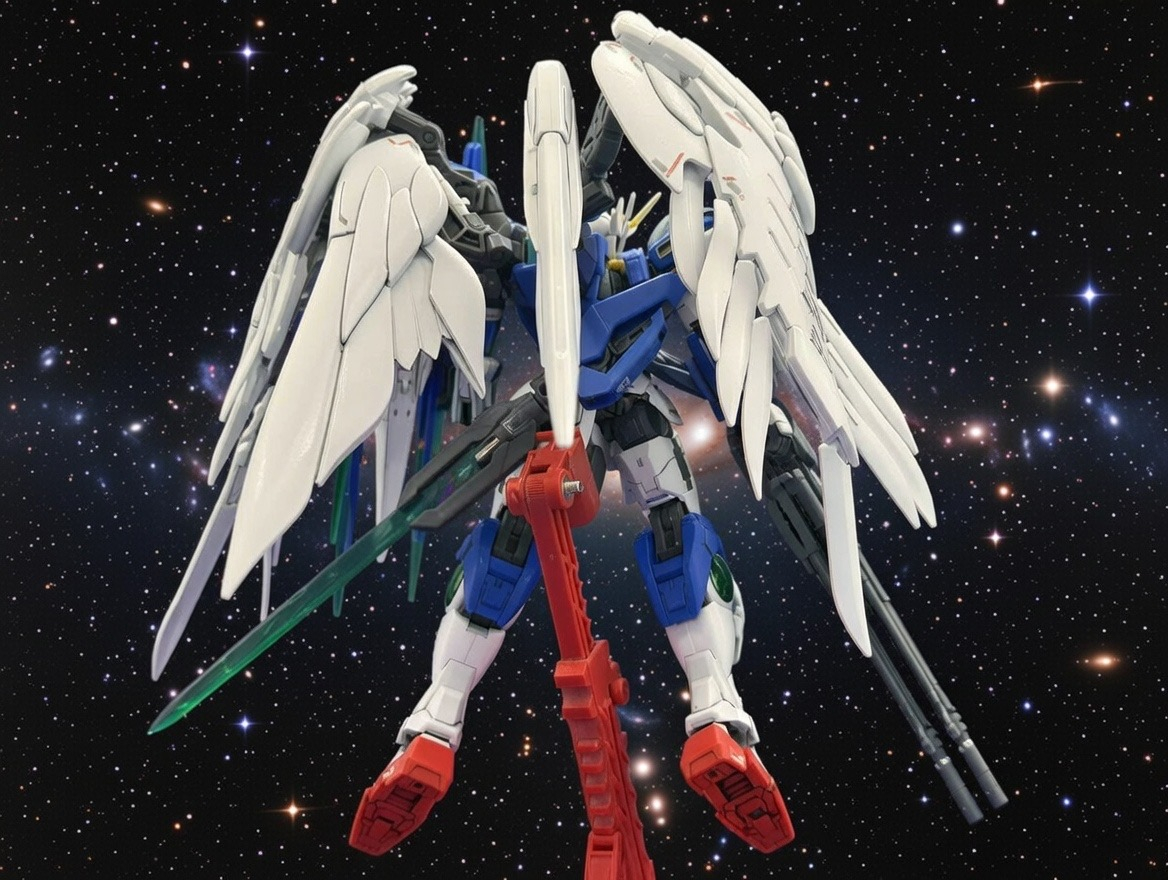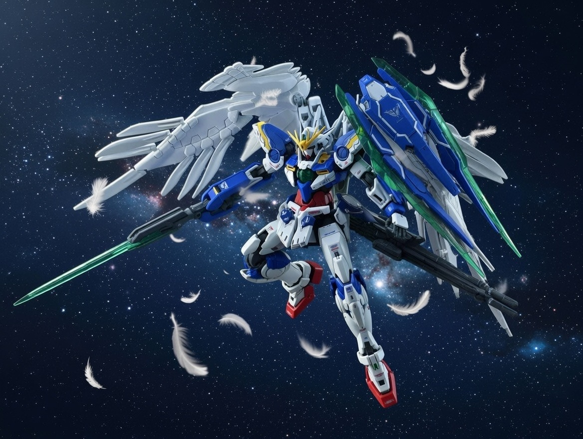 背景を生成できるなら羽も生成できるんじゃないかと気がついてこれをせずにはいられなかったのでガンダムWOクアンタカスタムです