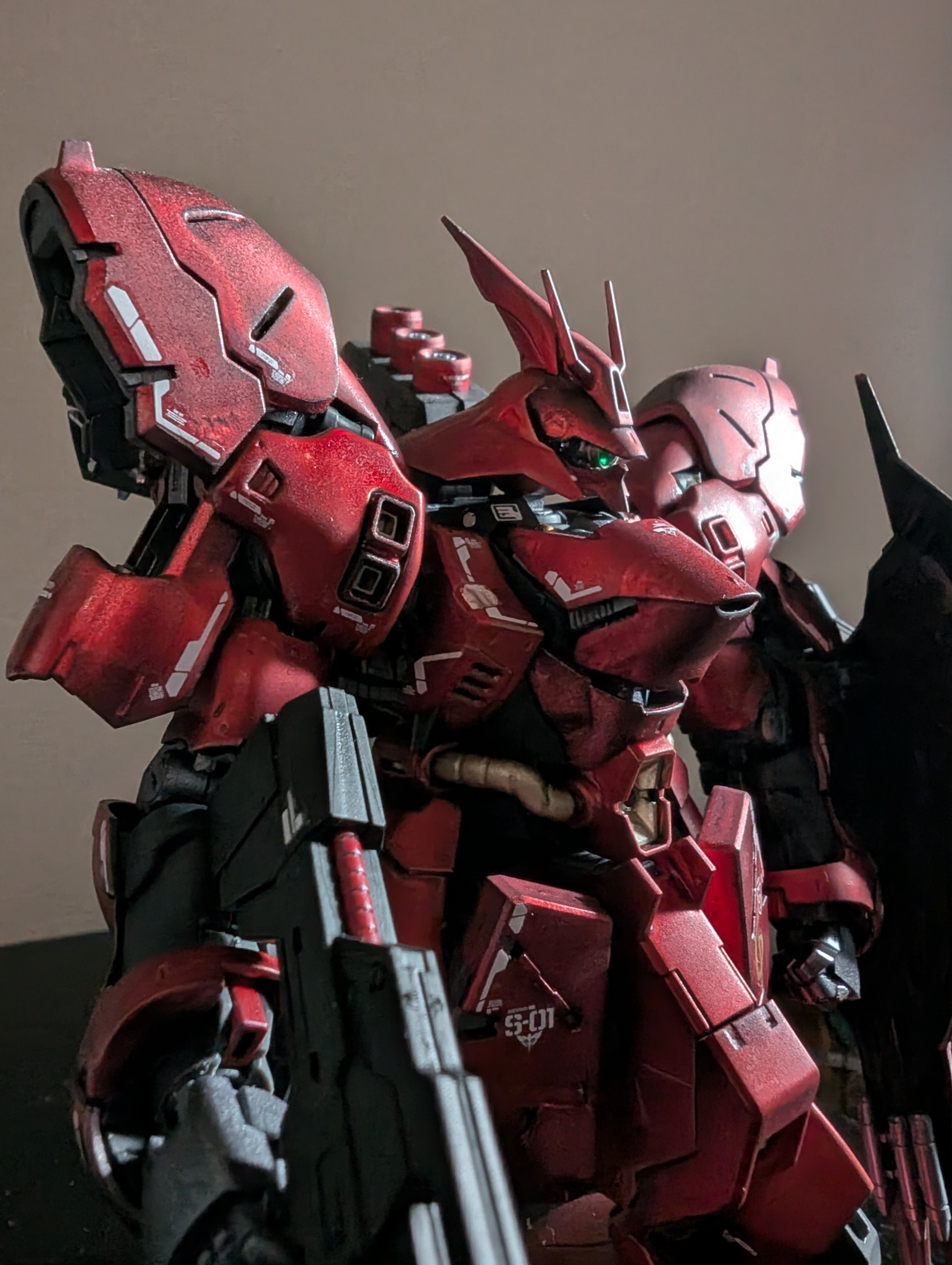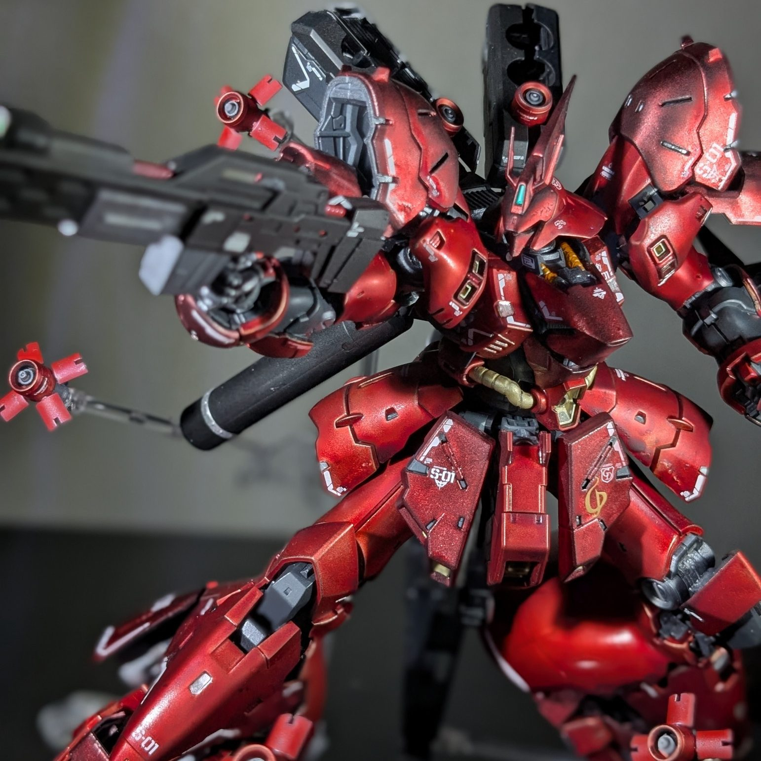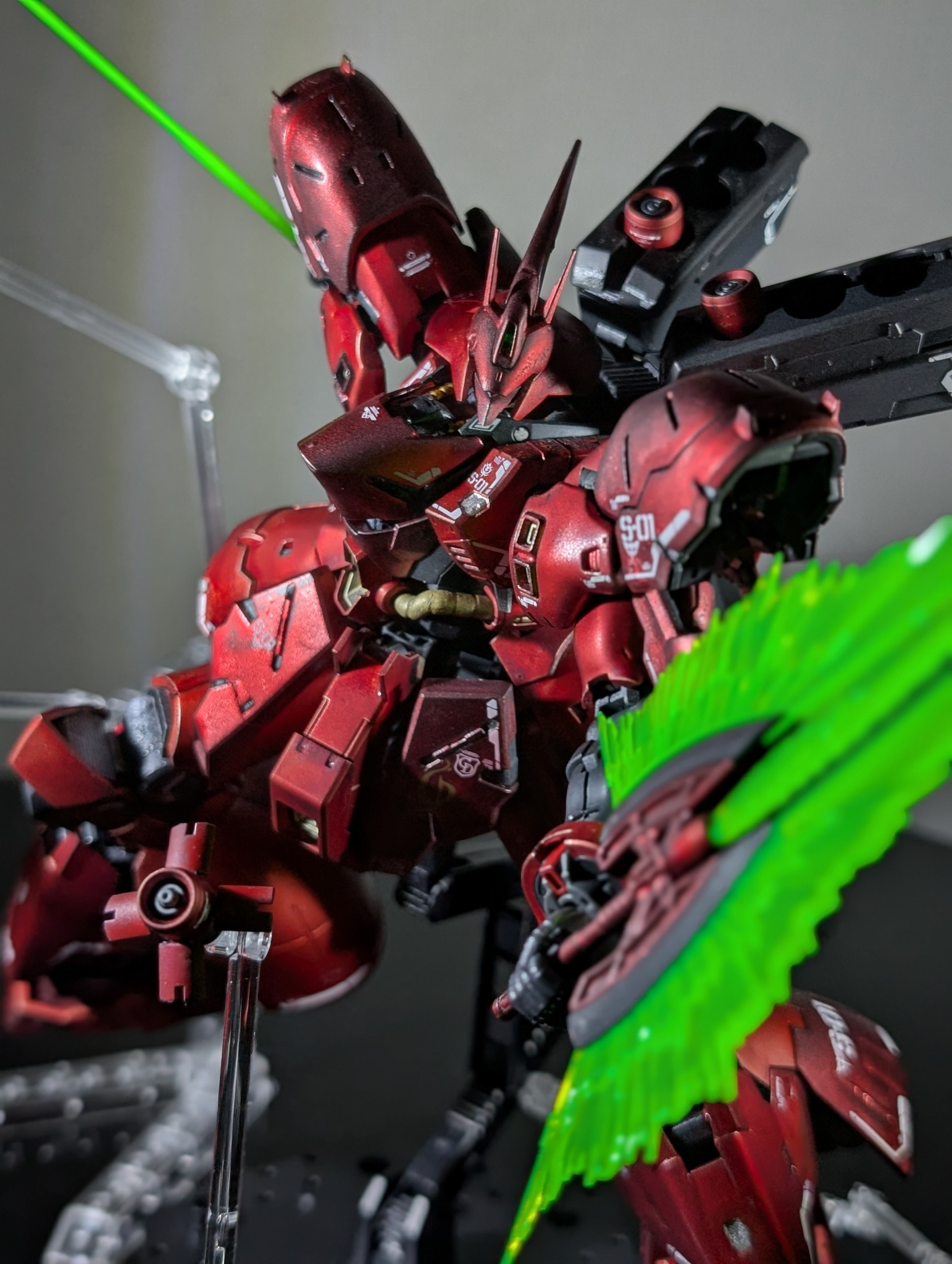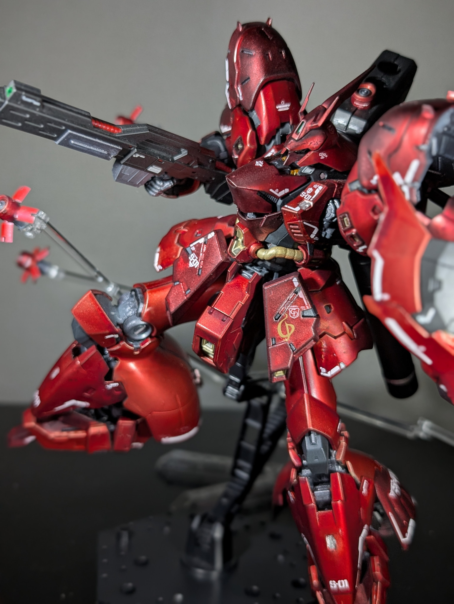 前回がνガンダムだったので、今回はライバル機のサザビーをマットキャンディ風に塗装しました!