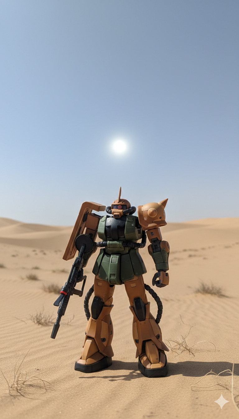炎天下の砂漠で、ニューヤークへの道に迷うガルマ😅