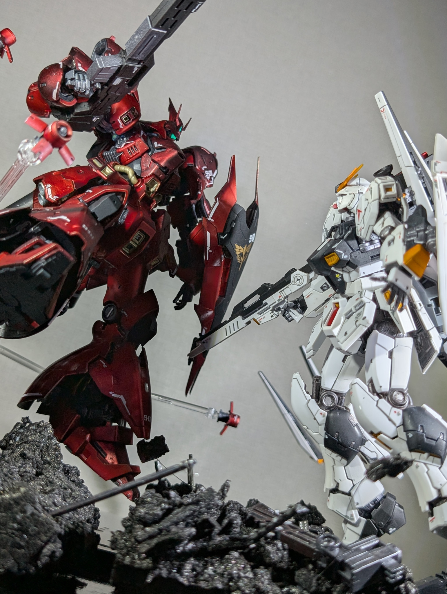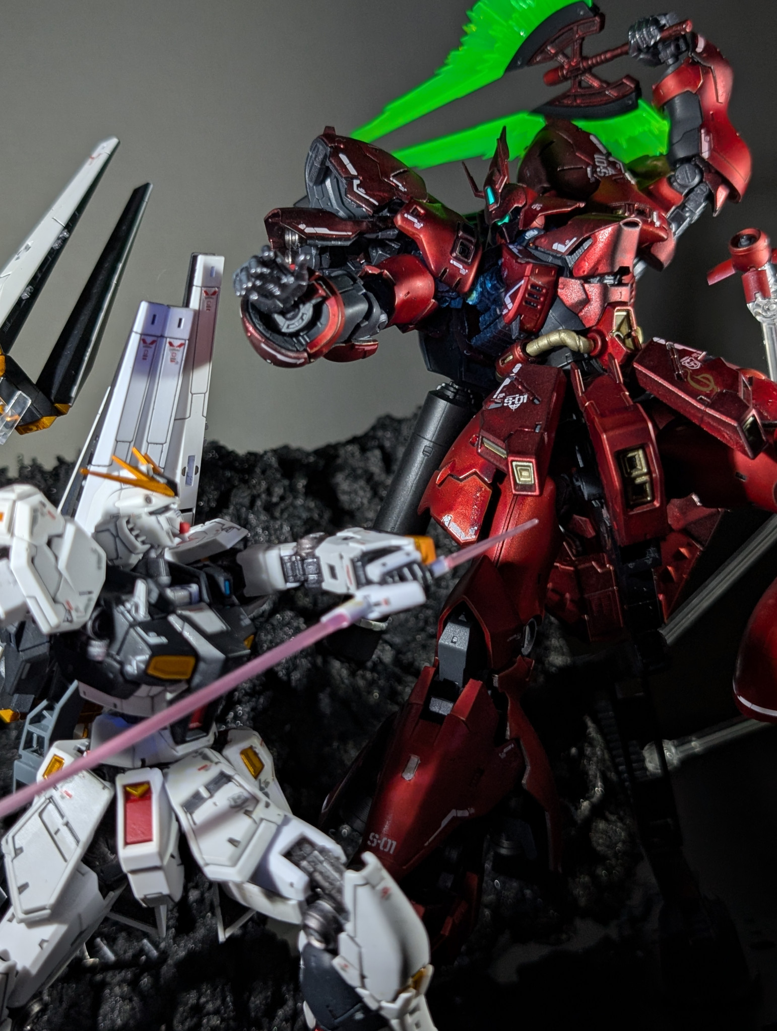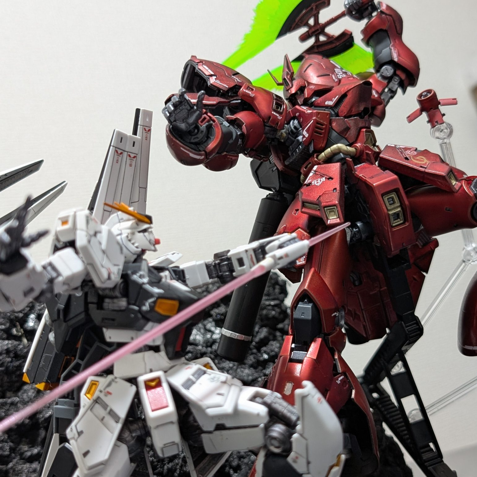 前回投稿したRGのνガンダムとサザビー、2機を並べたい欲望に逆らえなかったです(笑)