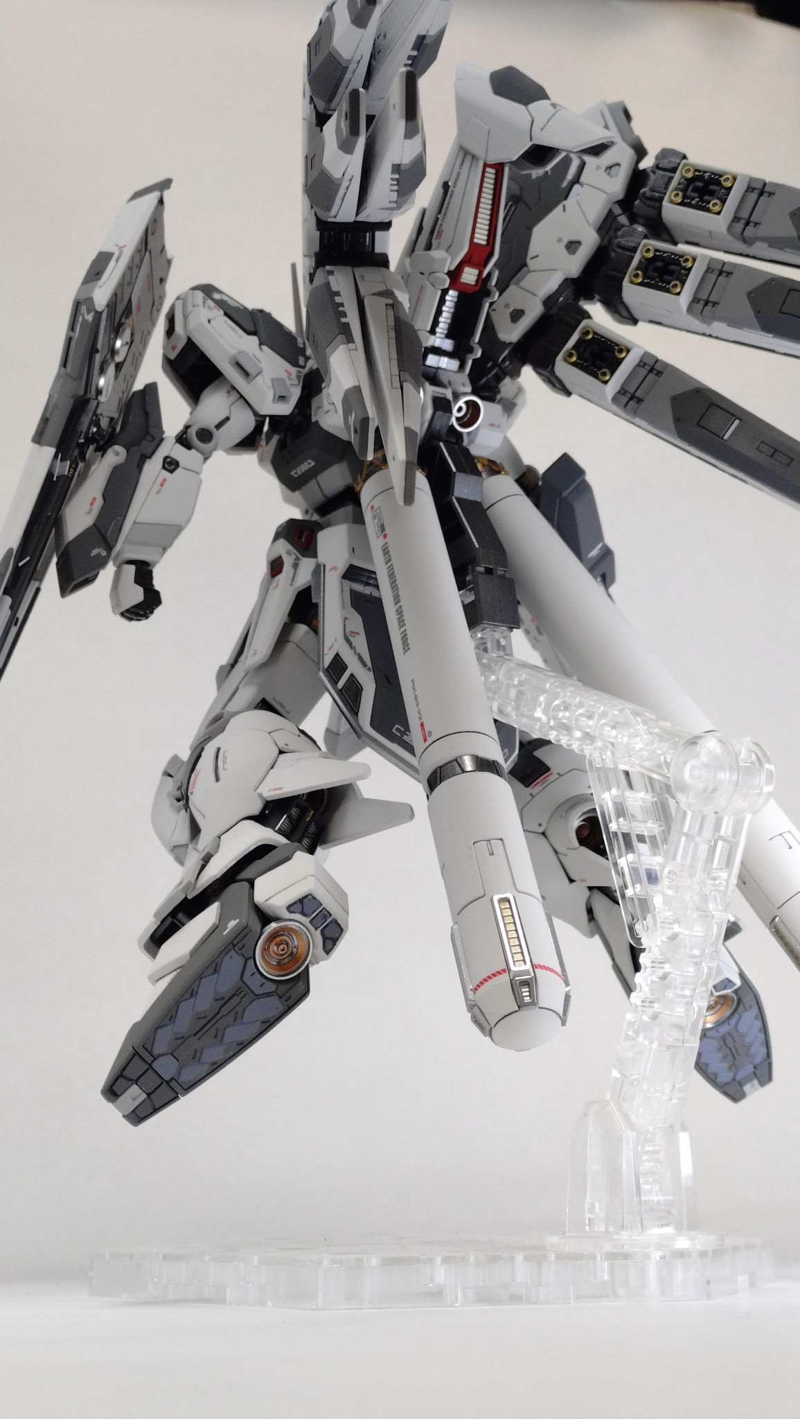 もはや語る必要もない名キット、RG Hi-νガンダムです。過去に何度か出してますが、いつ触っても素晴らしいと思ってしまいます。背中のこのボリュームで自立(プロペラントタンクありきですが)するってのが良いですね
