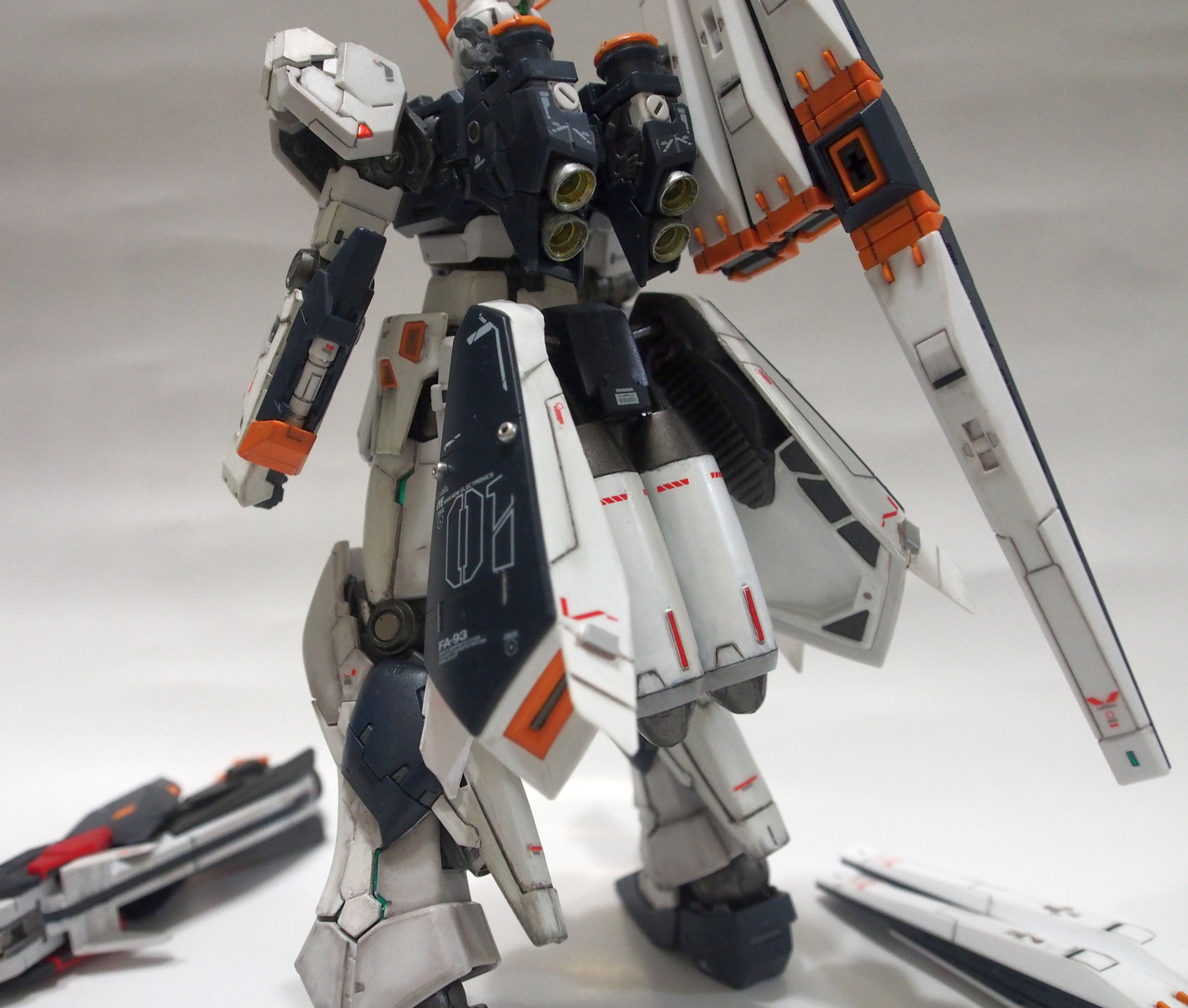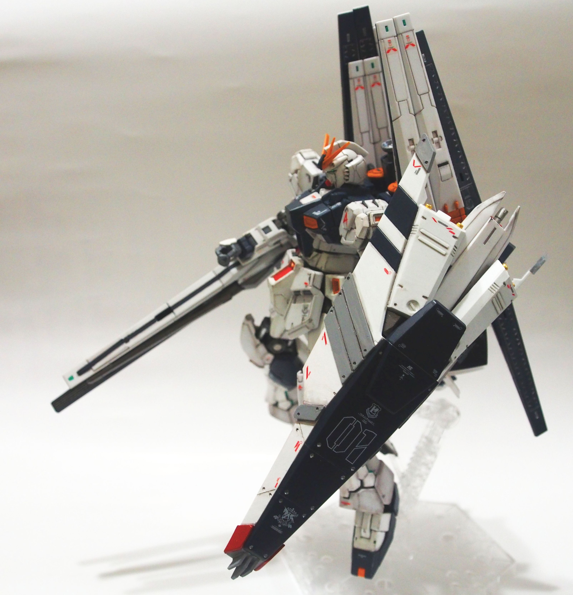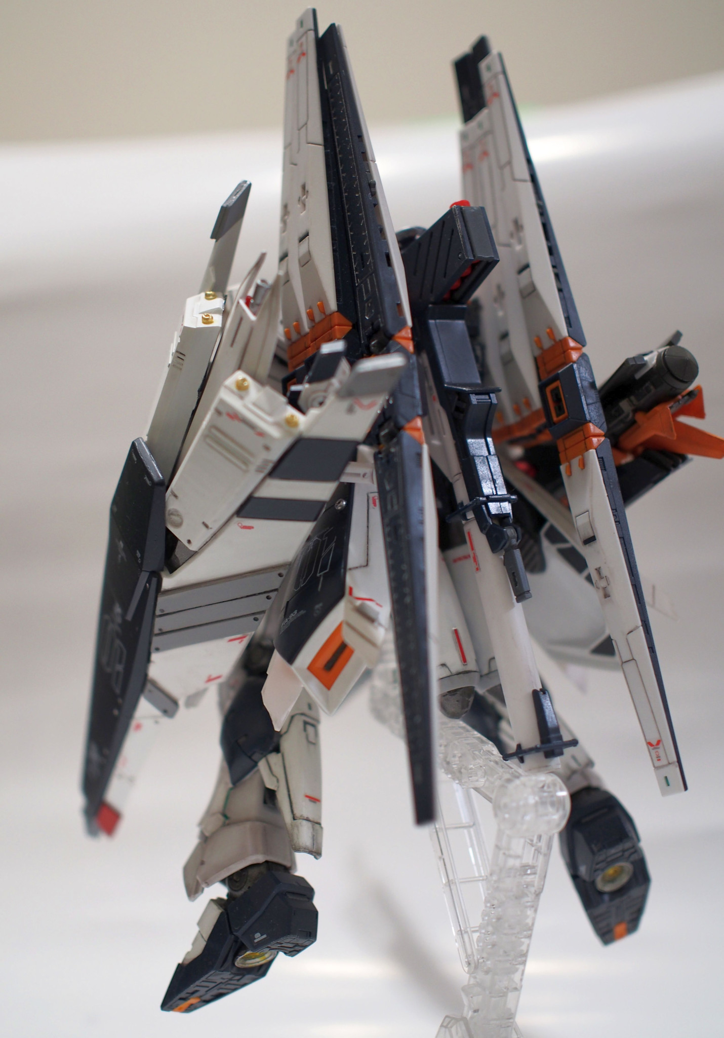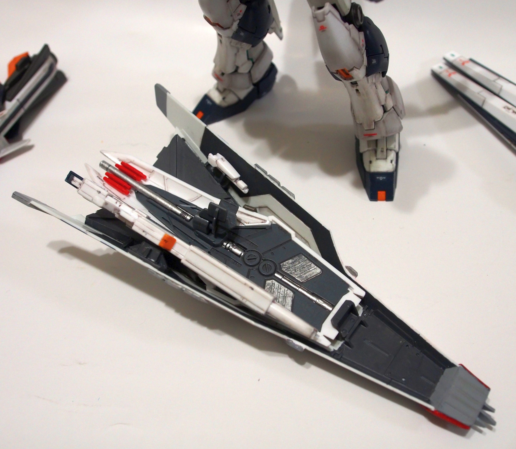 νガンダム L.R.F.F.装備は、我ながらなかなかの出来栄えだったのですが、だいぶ見慣れてしまったこともあってちょっとアレンジを加えたくなりました。HWS+ロングレンジフィンファンネルの構成自体は先行作品が幾つかあったので、ただ足すのでは面白くないのと、本体はスマートさを維持したかったので、以下変更により新兵装にしました。