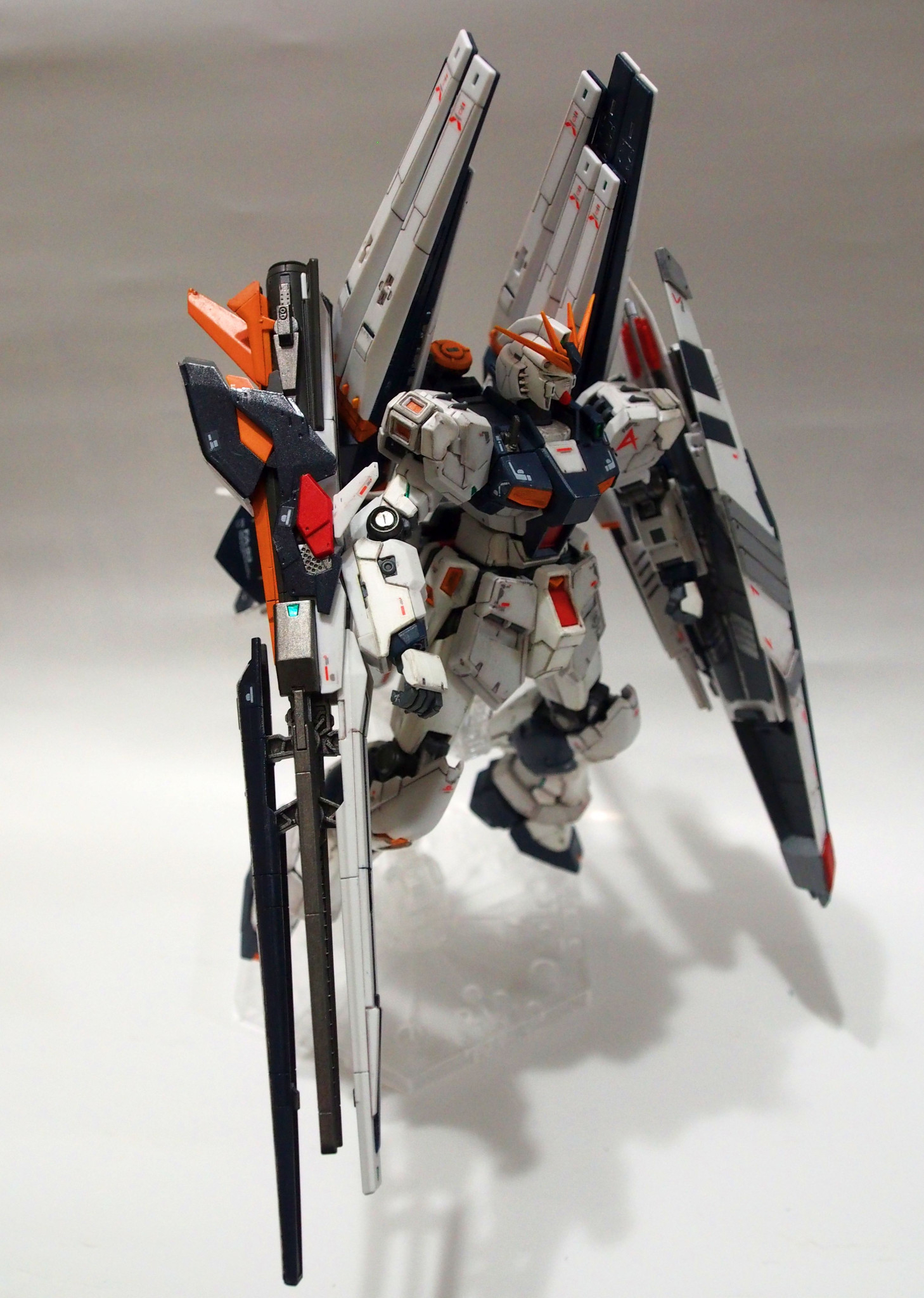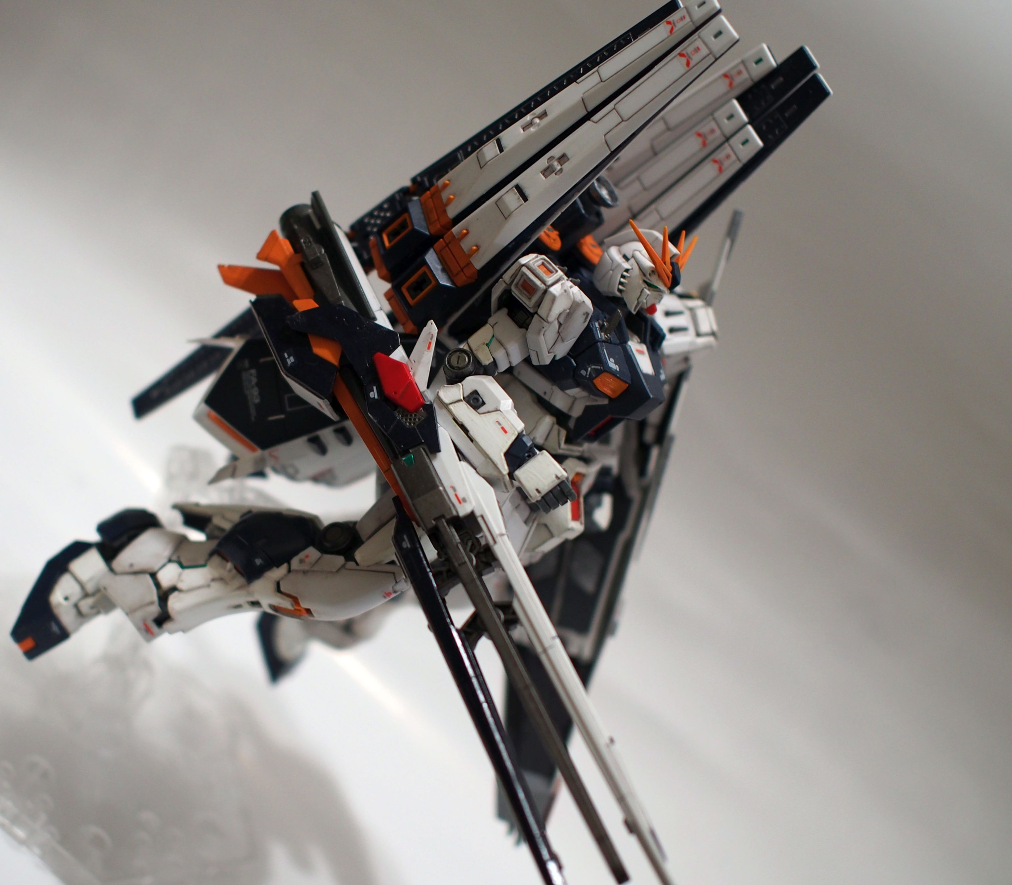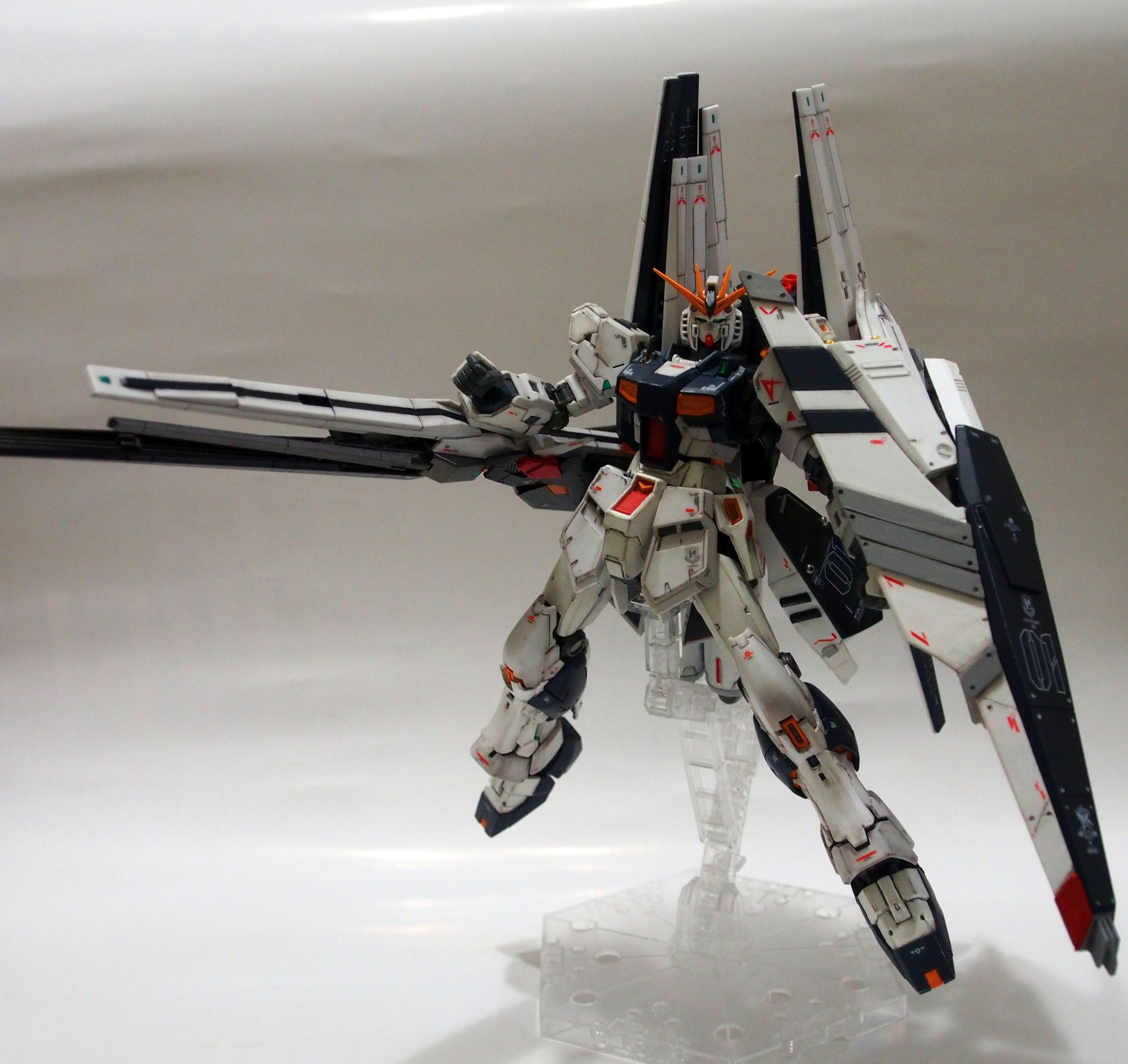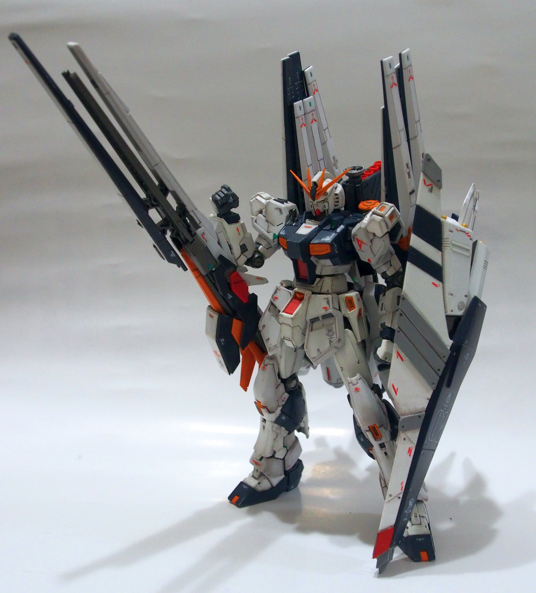 νガンダム L.R.F.F.装備は、我ながらなかなかの出来栄えだったのですが、だいぶ見慣れてしまったこともあってちょっとアレンジを加えたくなりました。HWS+ロングレンジフィンファンネルの構成自体は先行作品が幾つかあったので、ただ足すのでは面白くないのと、本体はスマートさを維持したかったので、以下変更により新兵装にしました。