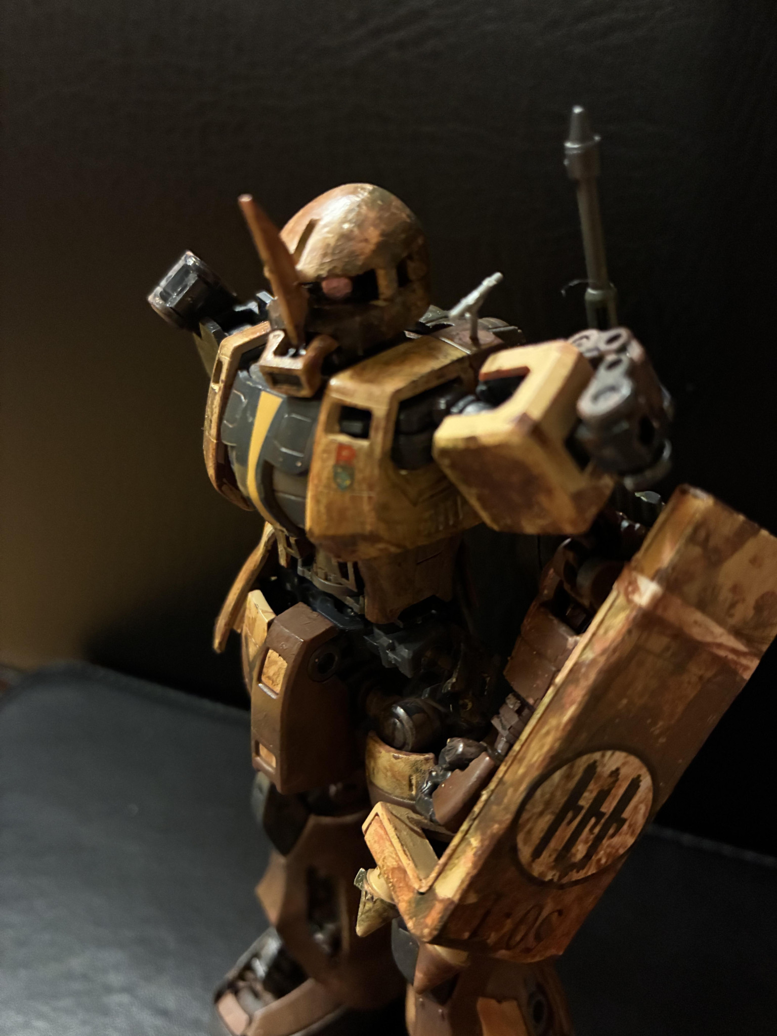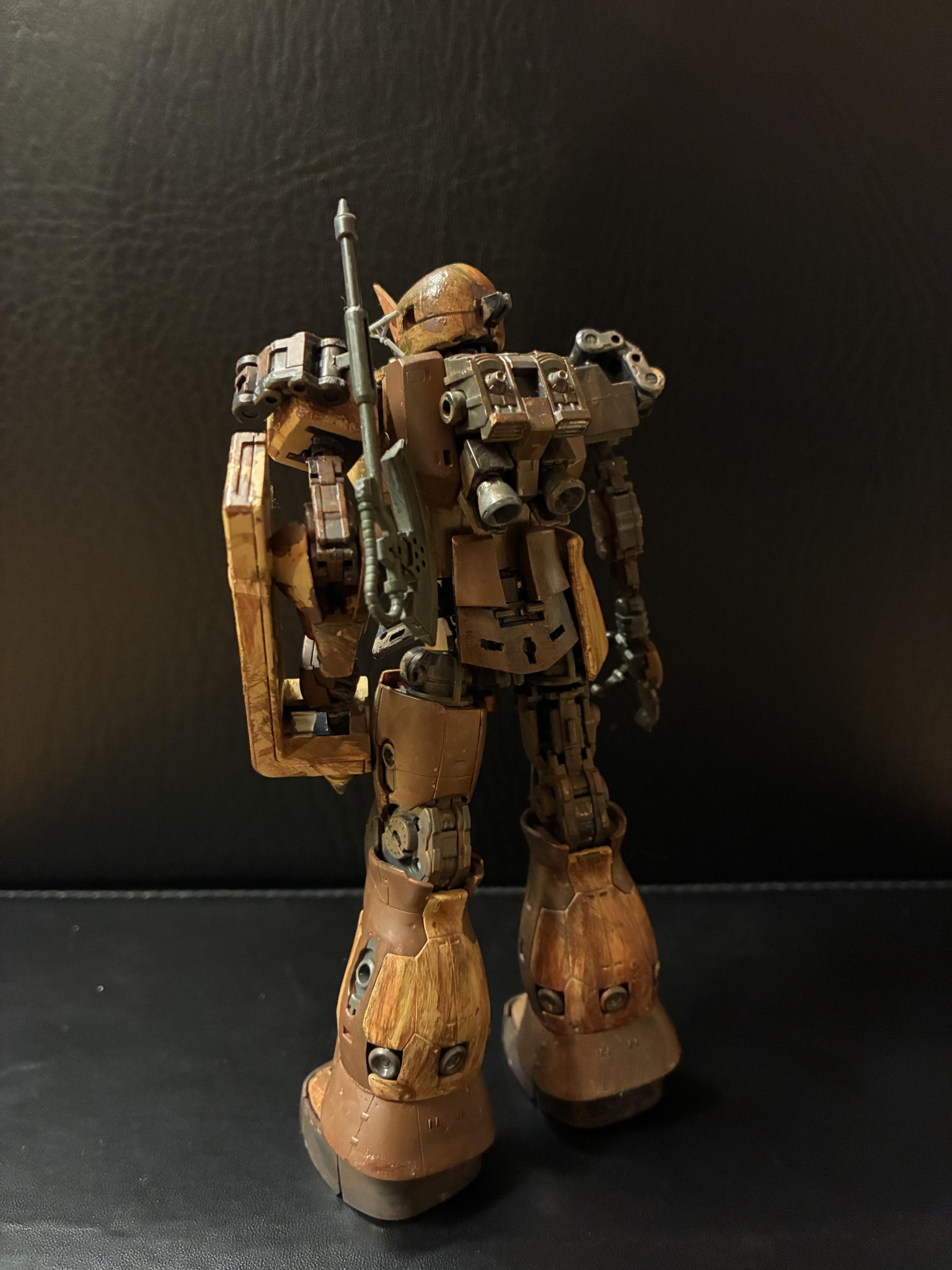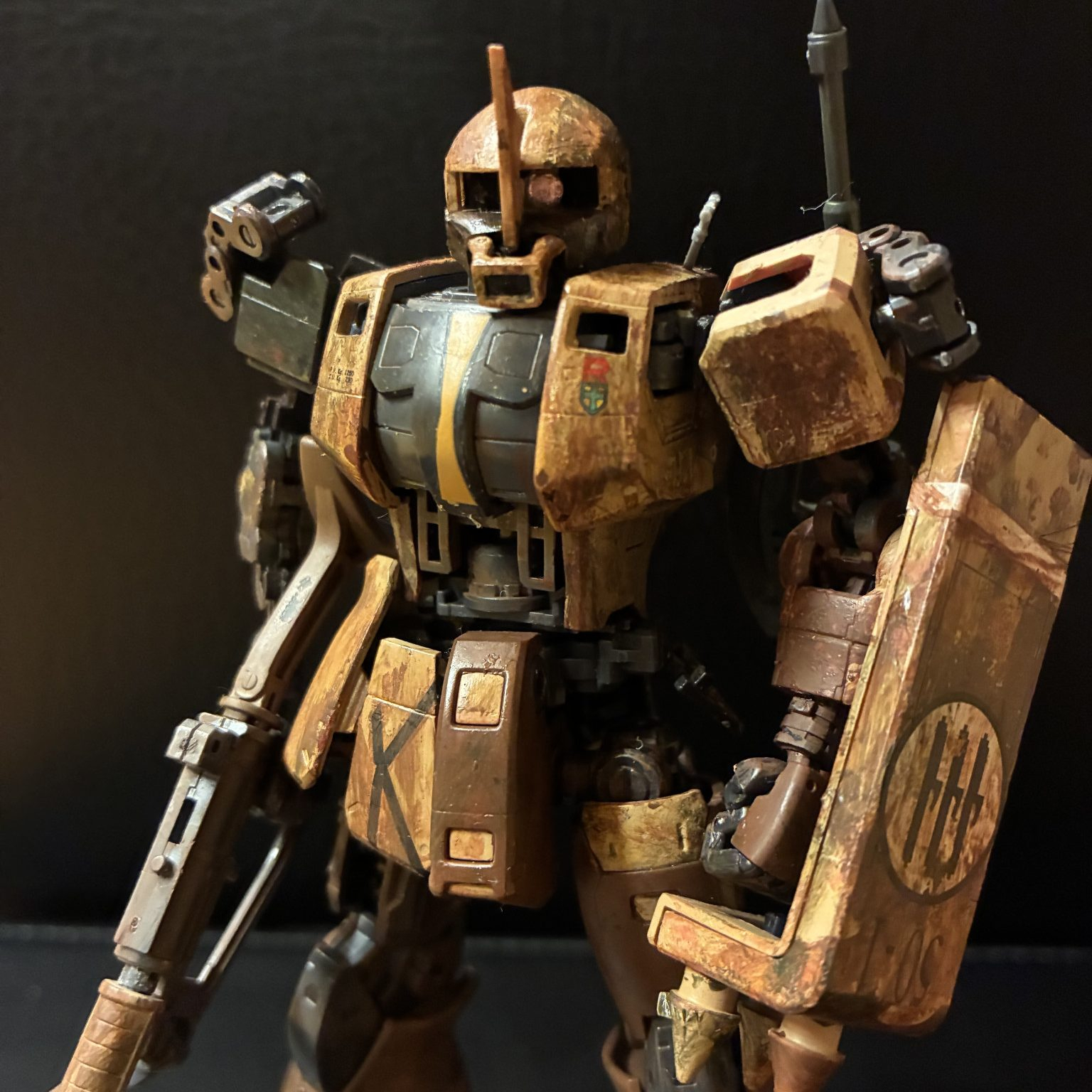 ところどころ装甲がなくてフレームが露出しているところがウェザリングとも相まってリアルでカッコイイですね(zaku-kao2)