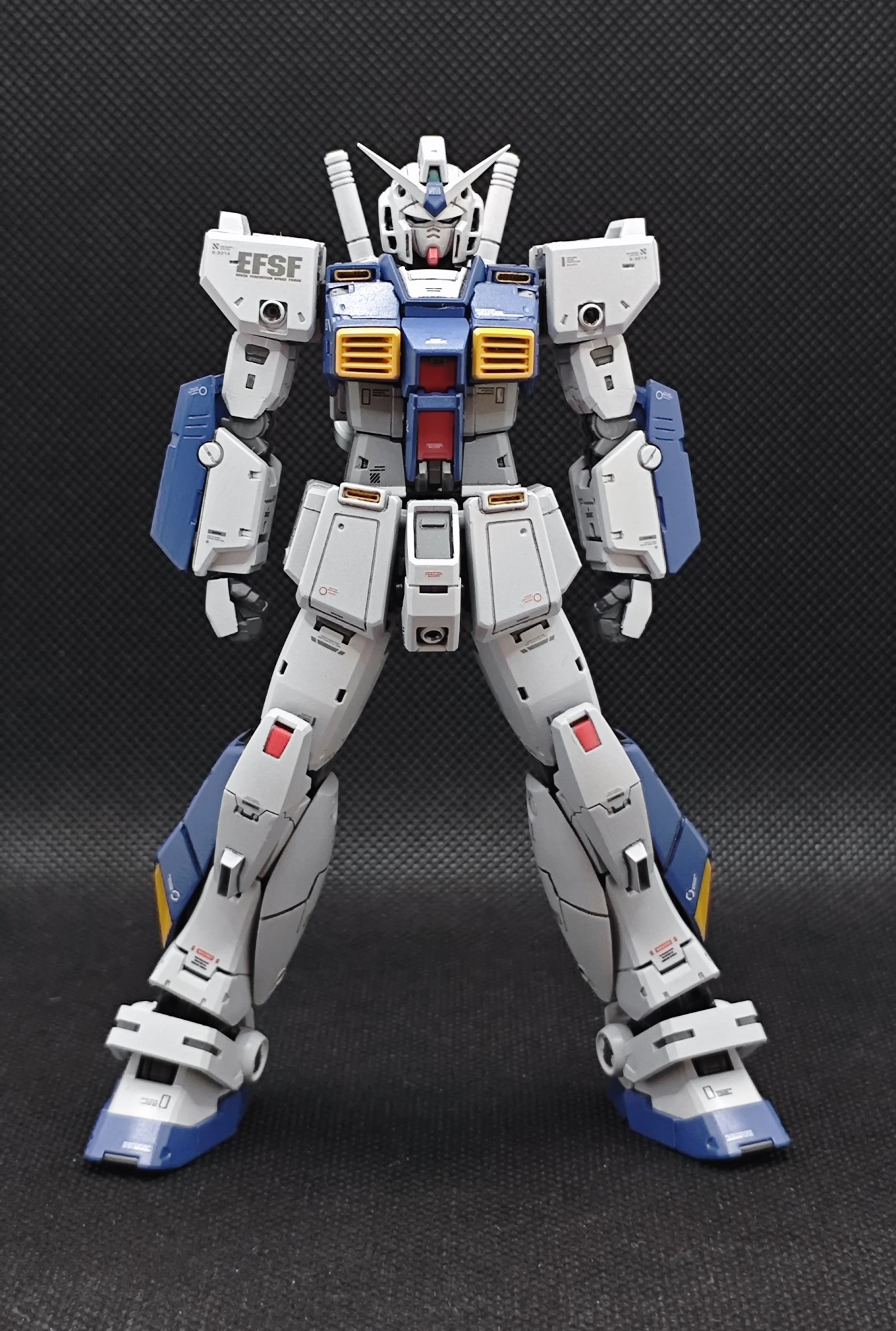 胴体で1mm位短く、脚部で4mm位延長している感じになるかと思いますが、この改造は通常のガンダムでも使えるので、その内RGガンダム2.0を作って、並べたいと思います