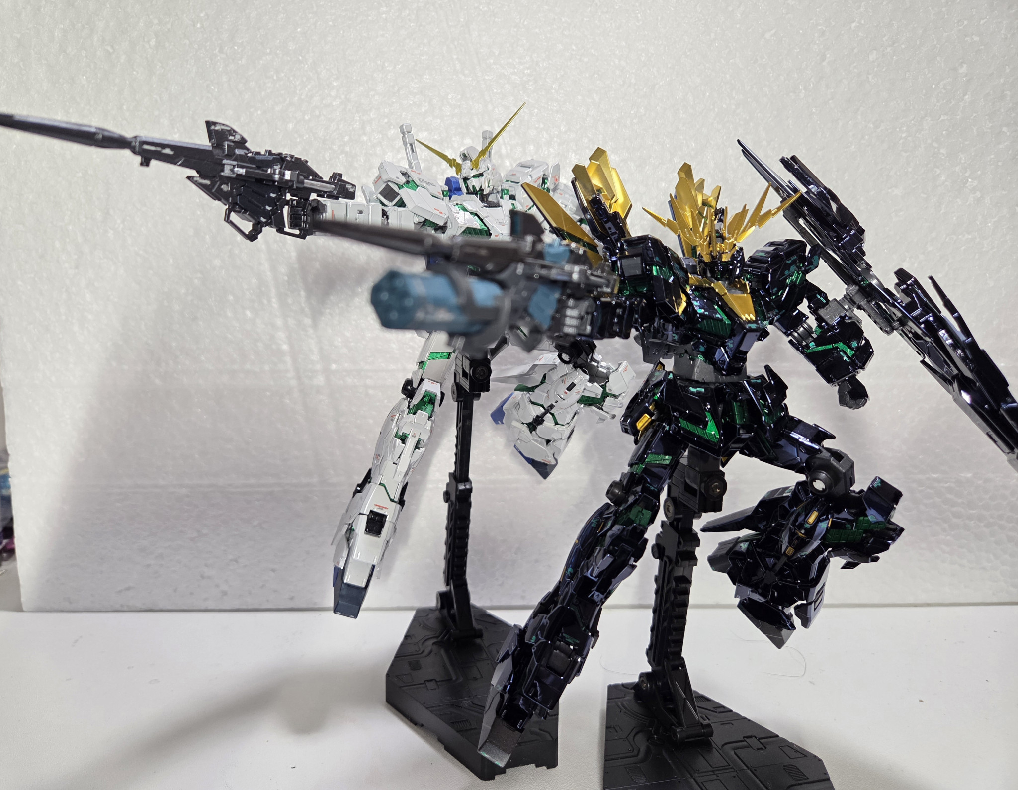 最後に過去に作ったユニコーンver.SPCと合わせて、ダブルビームマグナムをさせてみました。白と黒のコントラストが美しいですね。正直ユニコーン作った時いつか再現したいと思ってたのでそれが叶って嬉しいです(*^^*)