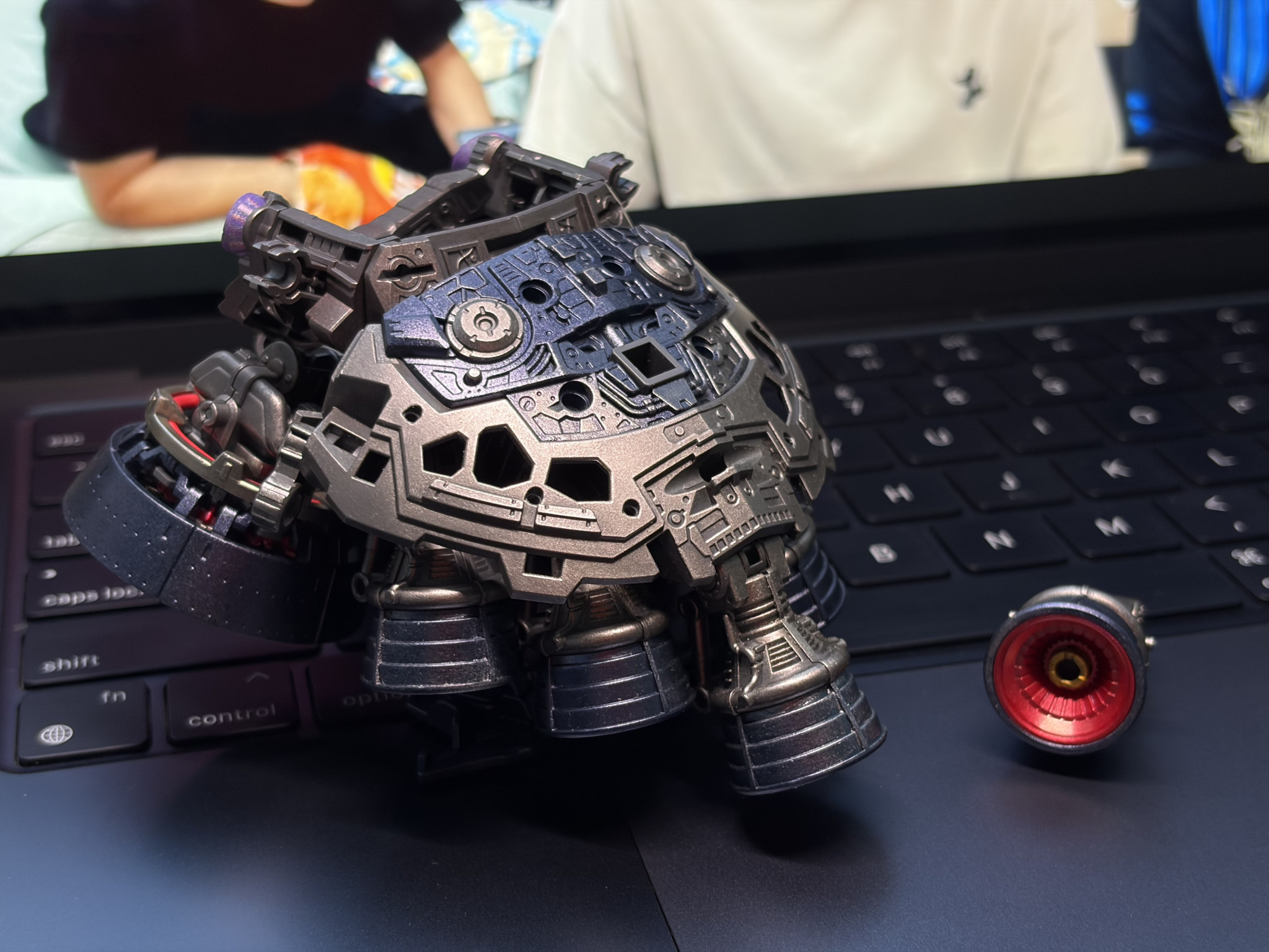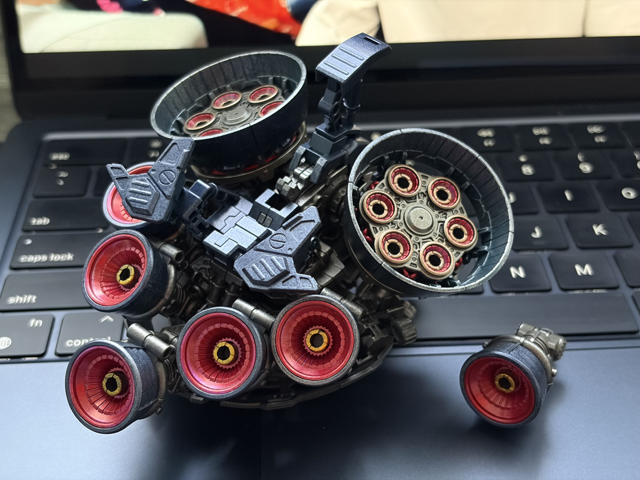 So I decided to skip some of the blue-colored armour parts, and hand-painted the yellow(on two arms) and red colours(head antennas etc.).