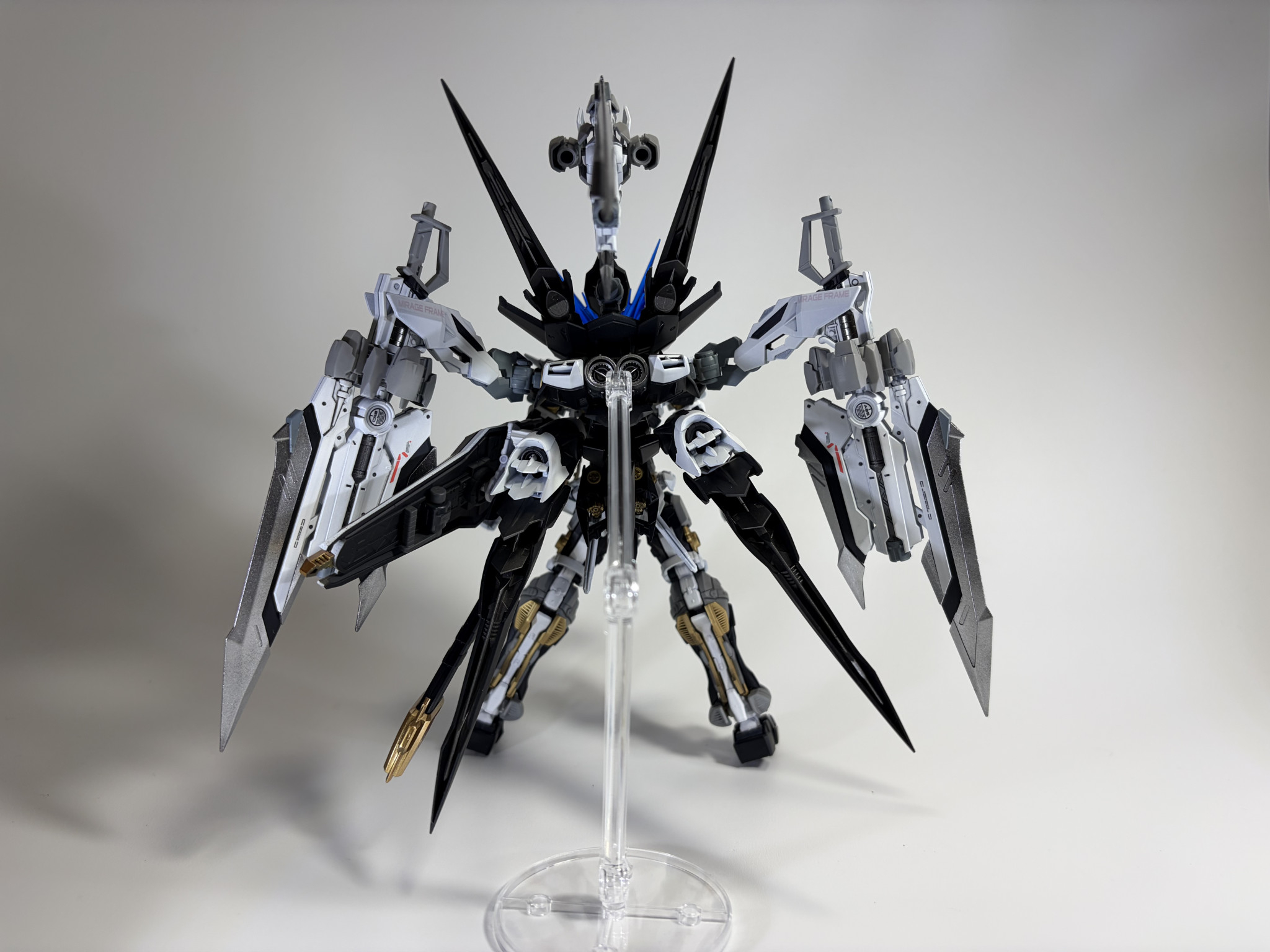 使用塗料はガイアのピュアホワイト、プリズムブルーブラック、ニュートラルグレーⅡ〜Ⅳ、スターブライトゴールド、スターブライトシルバー、クリアブルー等でスーパースムースクリアでトップコート仕上げしました。