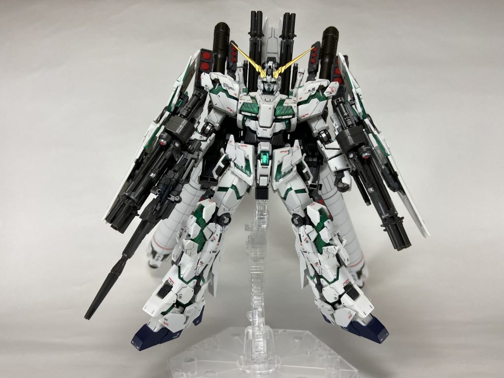 サイコフレームが赤から緑に発光色を変え、可能性に目覚めた獣をフルアーマーユニコーンを使って造ってみました。