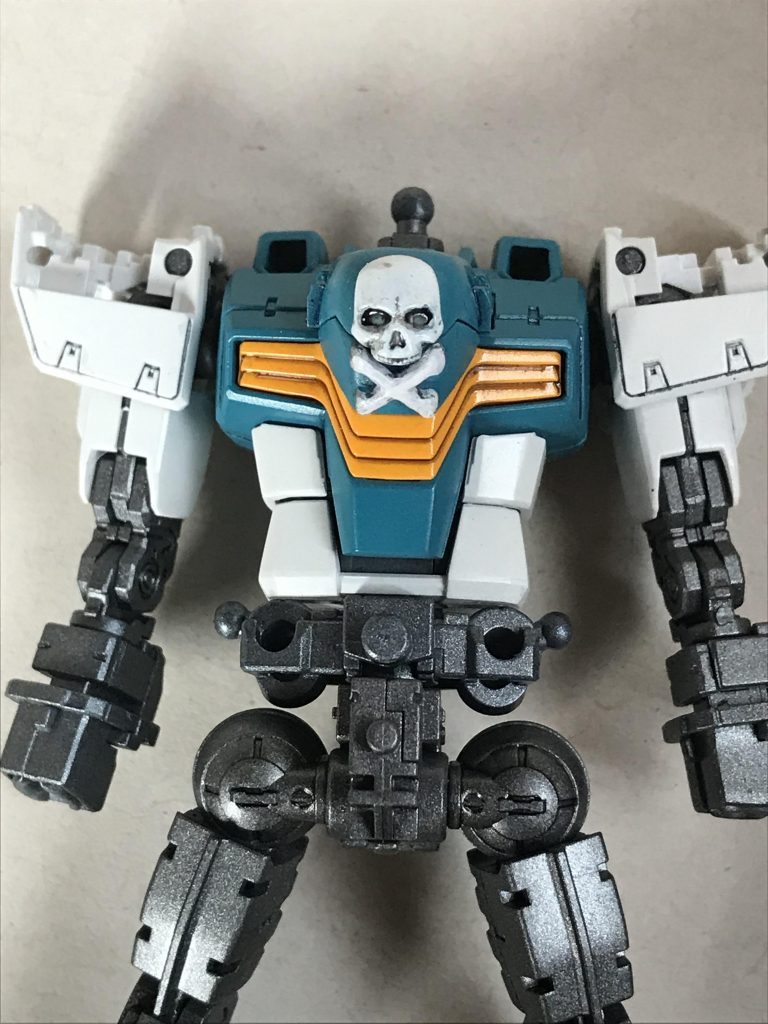胸のスカルレリーフはHGBFのフルクロスの物を移植。 バランス良くするため、スカルの下顎部分を切り飛ばし幅詰めして接着。