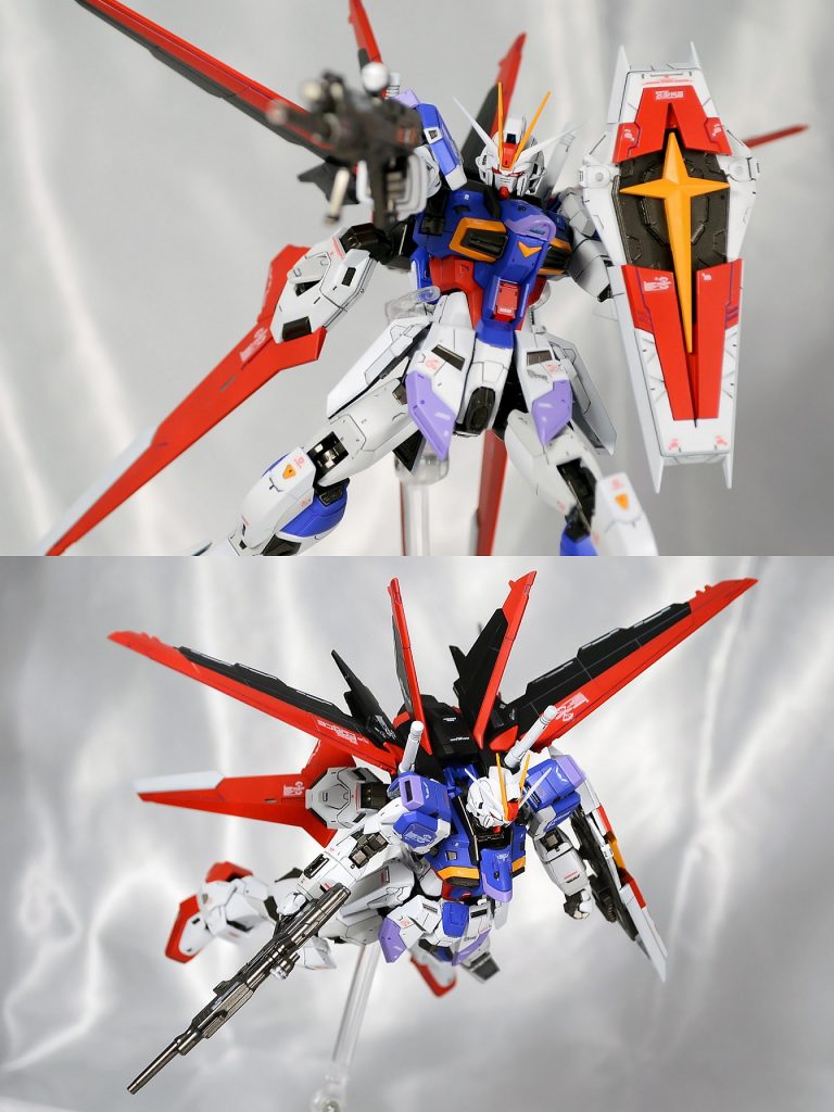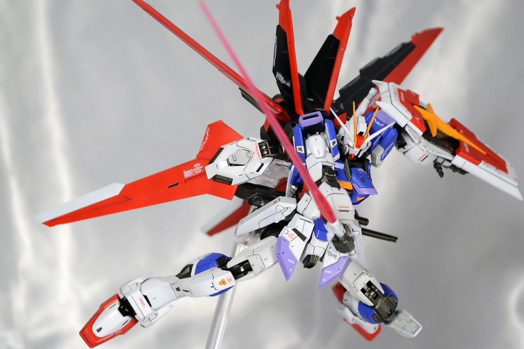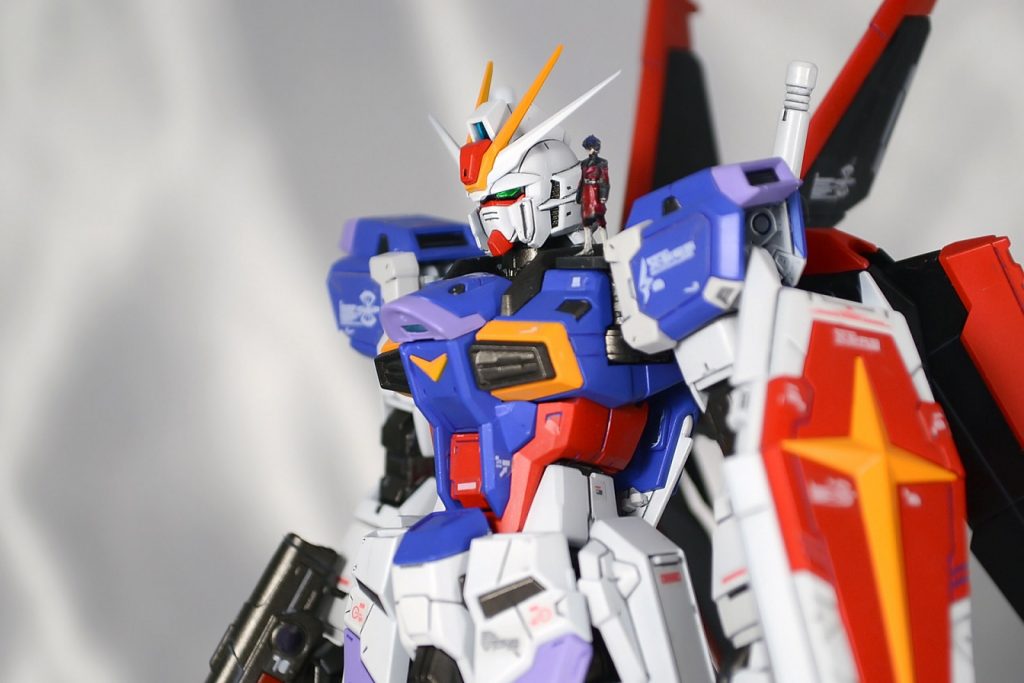 特に改修こそしていませんが、せっかくなので全塗装にて仕上げています。また、今回は久しぶりにパイロットフィギュア(シン・アスカ)も塗ってみました。
