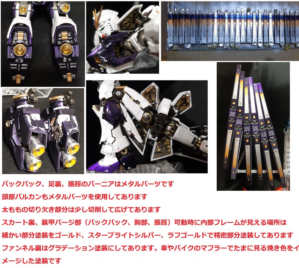 今回の特色としてはMrカラー、クリスタルカラーの使用とファンネルの焼き色グラデーション塗装です